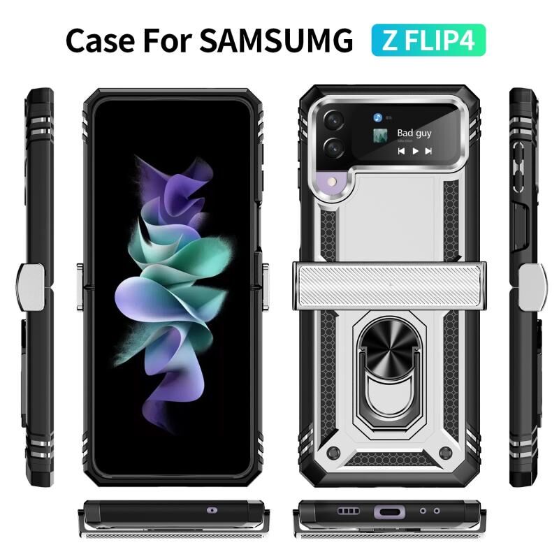 Για Samsung Galaxy Z Flip4 Shockproof TPU + PC Προστατευτική θήκη τηλεφώνου με 360 μοίρες περιστρεφόμενη θήκη (ασημί)