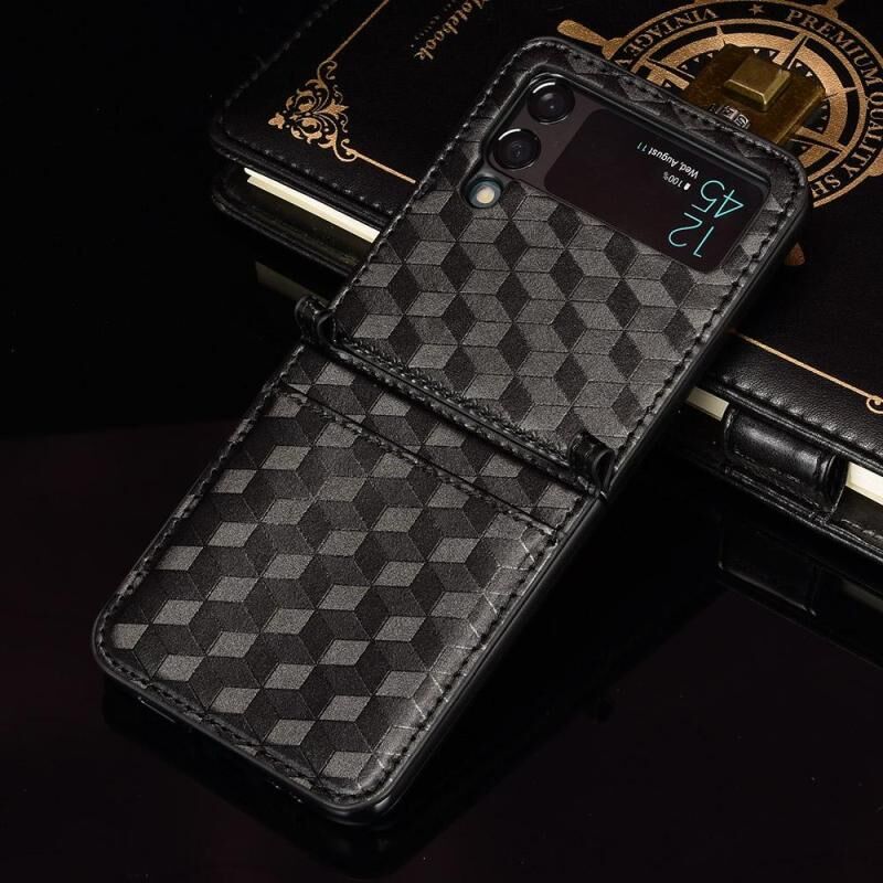For Samsung Galaxy Z Flip4 Siamese Cubic Grid Texture Card Slot Leather Phone Case(Black)