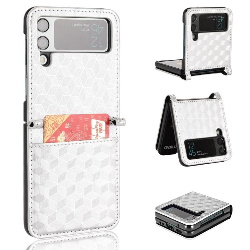 For Samsung Galaxy Z Flip4 Siamese Cubic Grid Texture Card Slot Leather Phone Case(Silver)