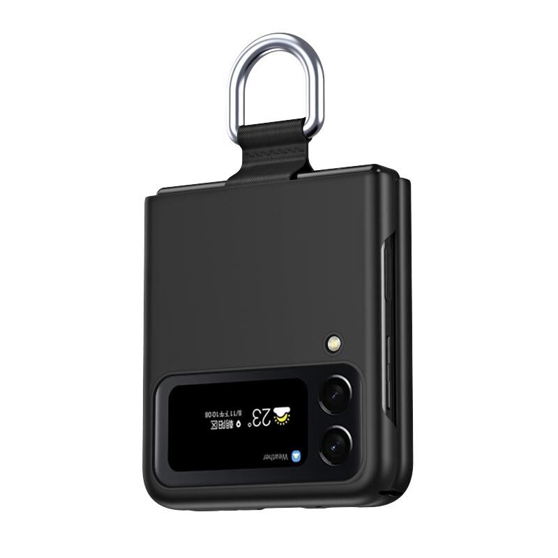 Για το Samsung Galaxy Z Flip4 δέρμα αίσθηση Πτυσσόμενη θήκη τηλεφώνου με κορδόνι κλειδί αλυσίδα (μαύρο)