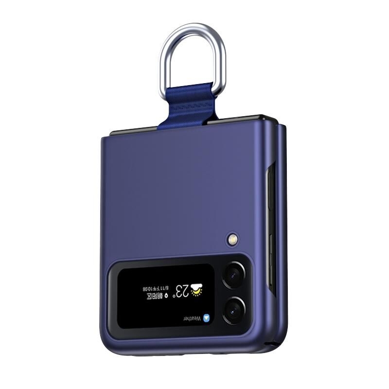 Για το Samsung Galaxy Z Flip4 δέρμα Feel Πτυσσόμενη θήκη τηλεφώνου με κορδόνι κλειδί αλυσίδα (μπλε)