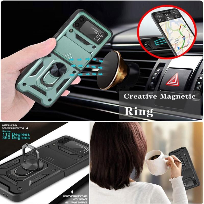 Για Samsung Galaxy Z Flip4 συρόμενη κάμερα κάλυμμα Σχεδιασμός TPU + PC Προστατευτική θήκη τηλεφώνου (πράσινο)
