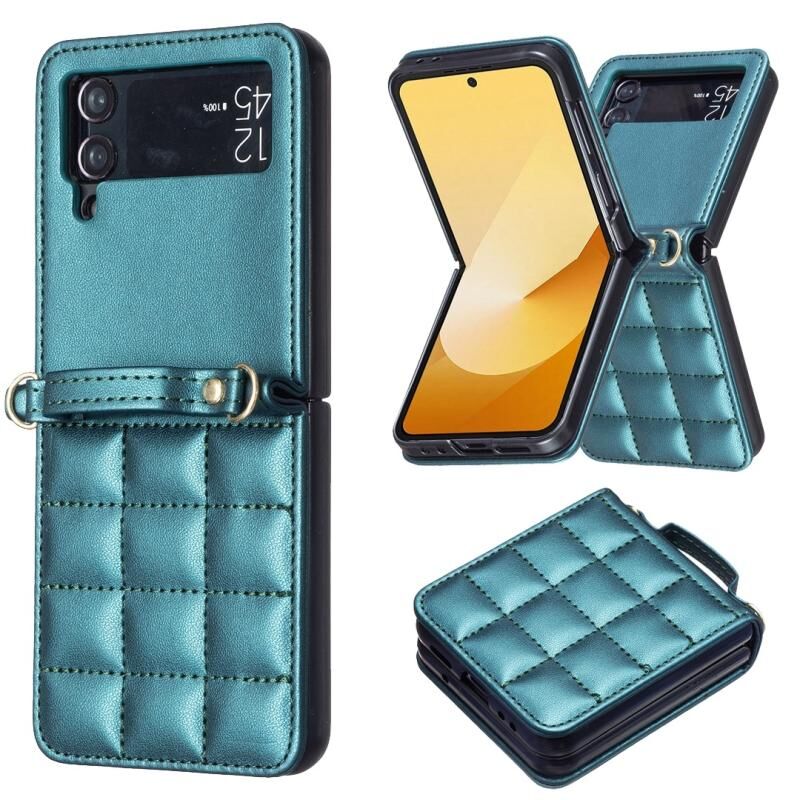 Για Samsung Galaxy Z Flip4 τετράγωνο σχήμα σταυρό κορδόνι δερμάτινη θήκη τηλεφώνου Lanyard (πράσινο)
