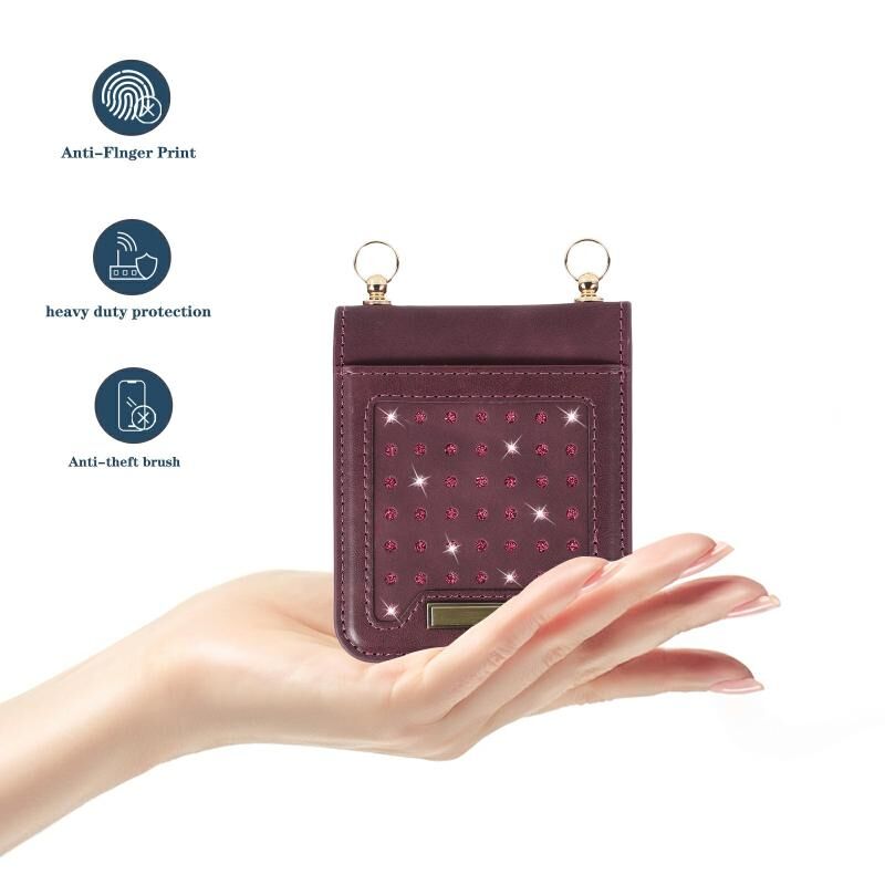 Για Samsung Galaxy Z Flip4 Τρεις φορές RFID δερμάτινη θήκη τηλεφώνου με κορδόνι (κόκκινο)