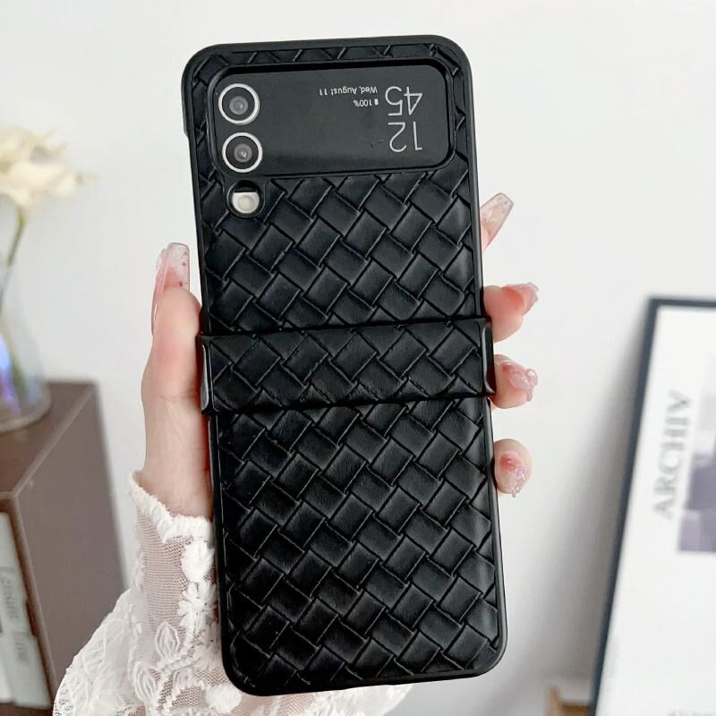 Σετ τριών τεμαχίων για Samsung Galaxy Z Flip4, θήκη τηλεφώνου από πλεγμένο υφή, αναδιπλούμενο PU (Χρυσό)