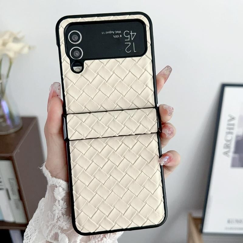 Σετ τριών τεμαχίων για Samsung Galaxy Z Flip4, θήκη τηλεφώνου από πλεγμένο υφή, αναδιπλούμενο PU (Χρυσό)