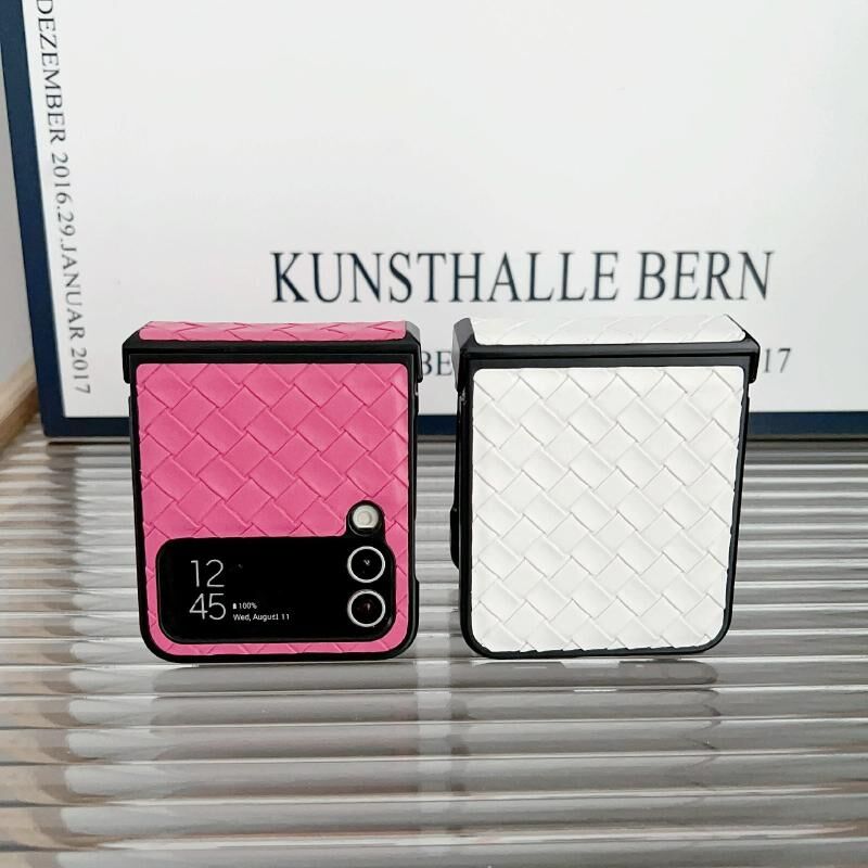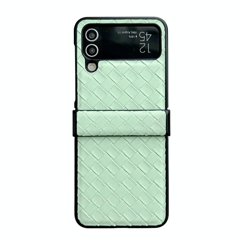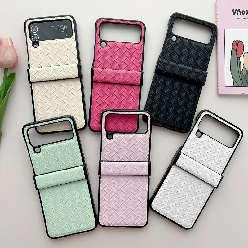 Σετ τριών τεμαχίων για Samsung Galaxy Z Flip4, θήκη τηλεφώνου από πλεγμένο υφή, αναδιπλούμενο PU (Χρυσό)
