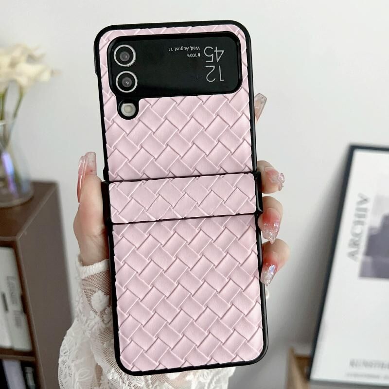 Σετ τριών τεμαχίων για Samsung Galaxy Z Flip4, θήκη τηλεφώνου από πλεγμένο υφή, αναδιπλούμενο PU (Χρυσό)