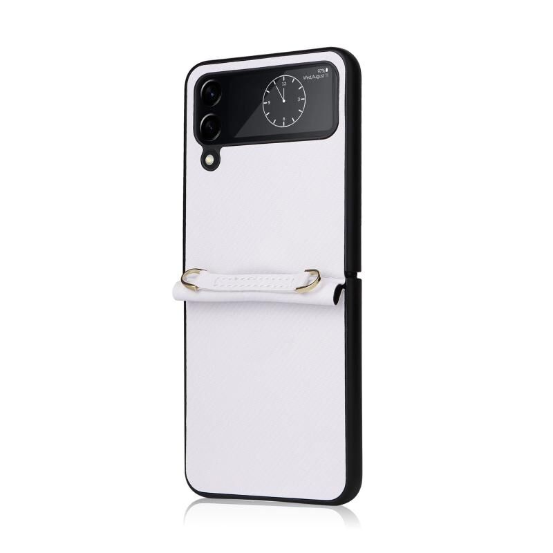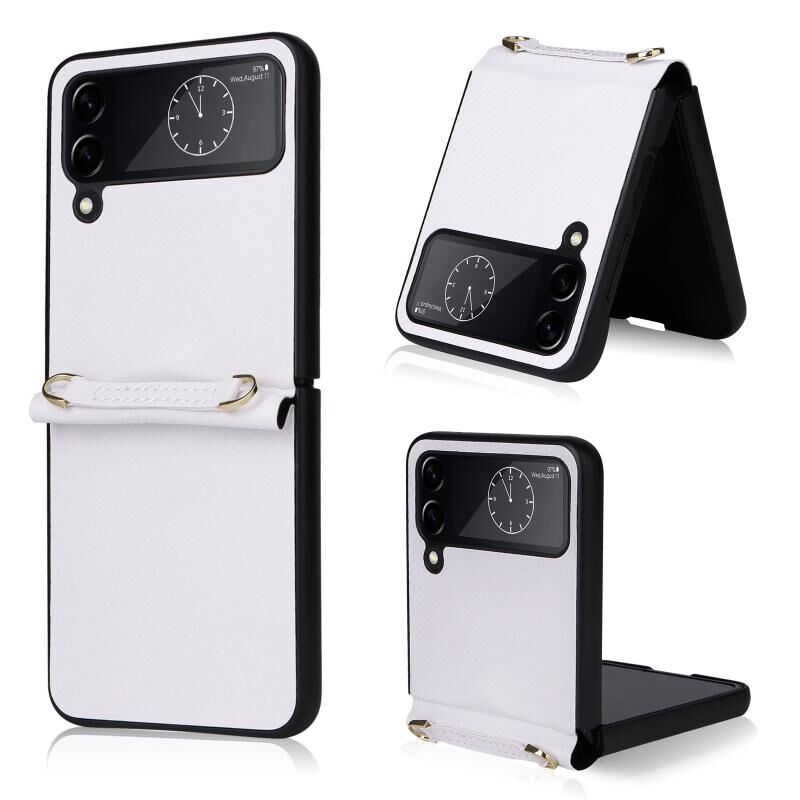 For Samsung Galaxy Z Flip4 Twill Texture Leather Phone Case with Lanyard(White)