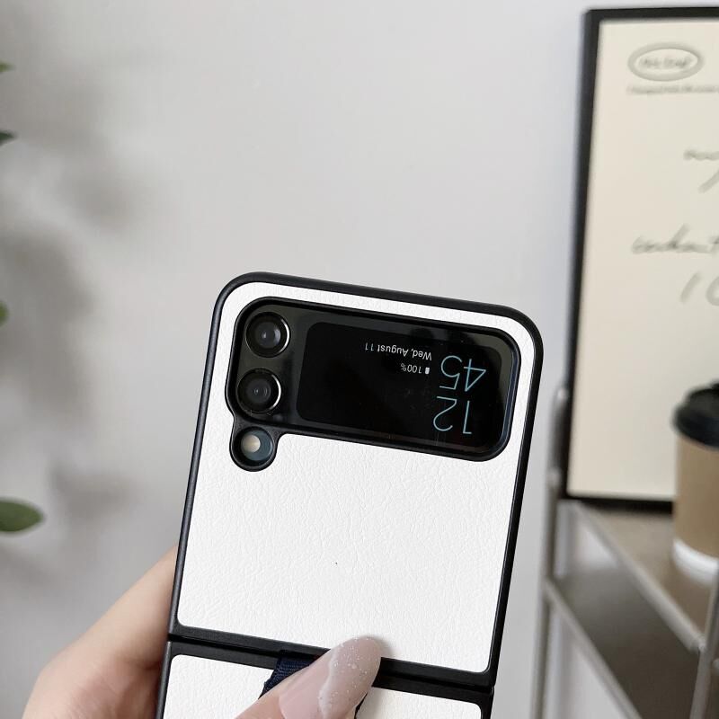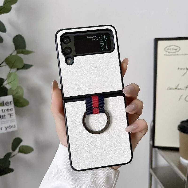 For Samsung Galaxy Z Flip4 Two-color Litchi Texture Phone Case With Ring(White)