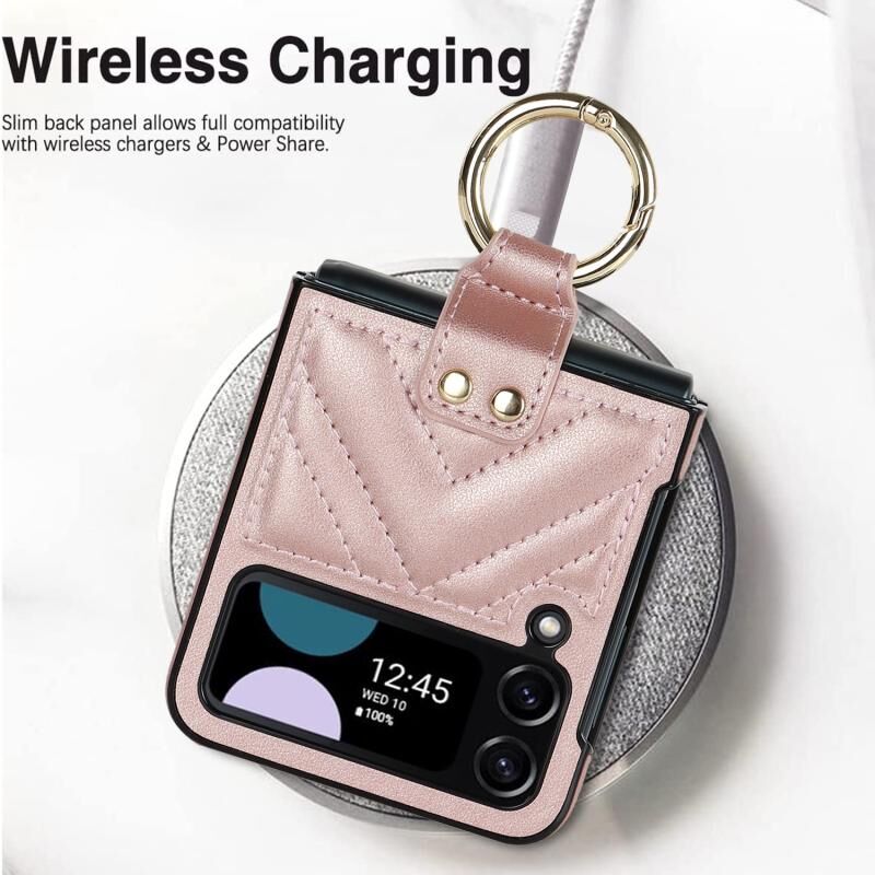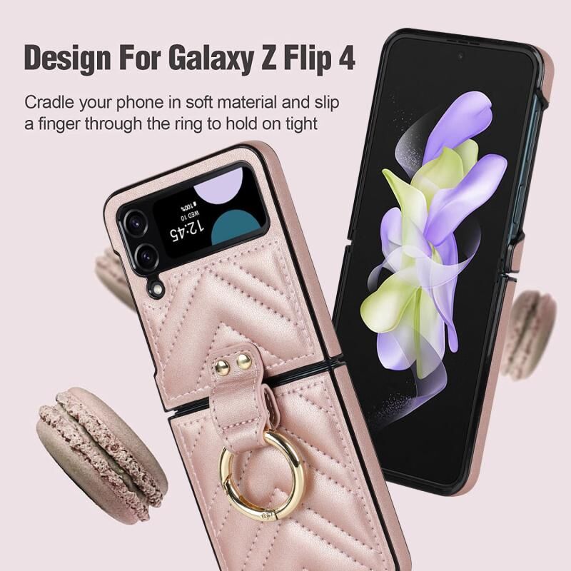 Για Samsung Galaxy Z Flip4 V-σχήμα Πτυσσόμενο Προστατευτική θήκη τηλεφώνου με πτυσσόμενο δαχτυλίδι (ροζ χρυσό)