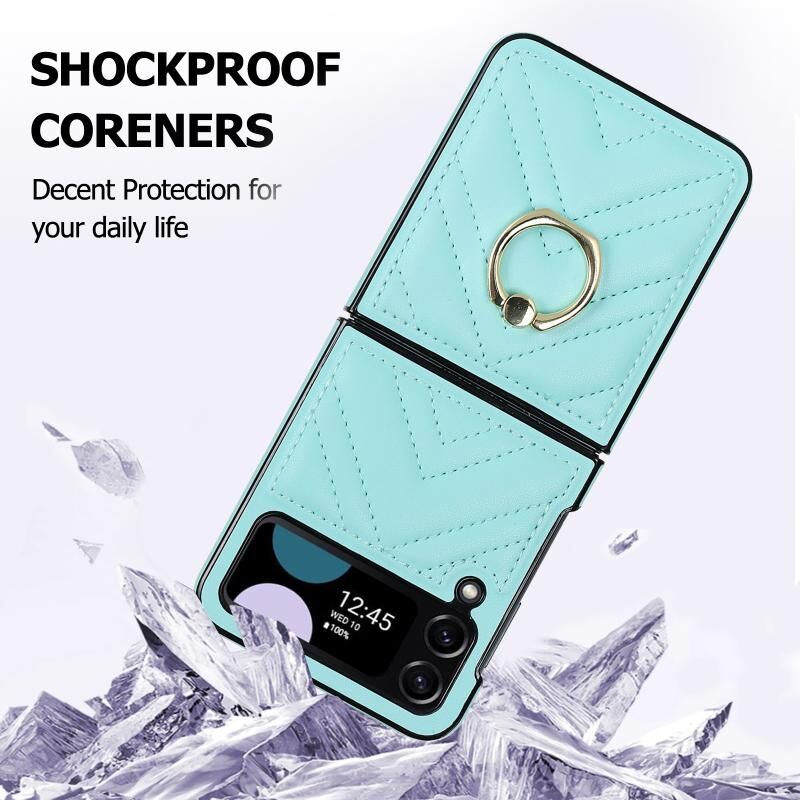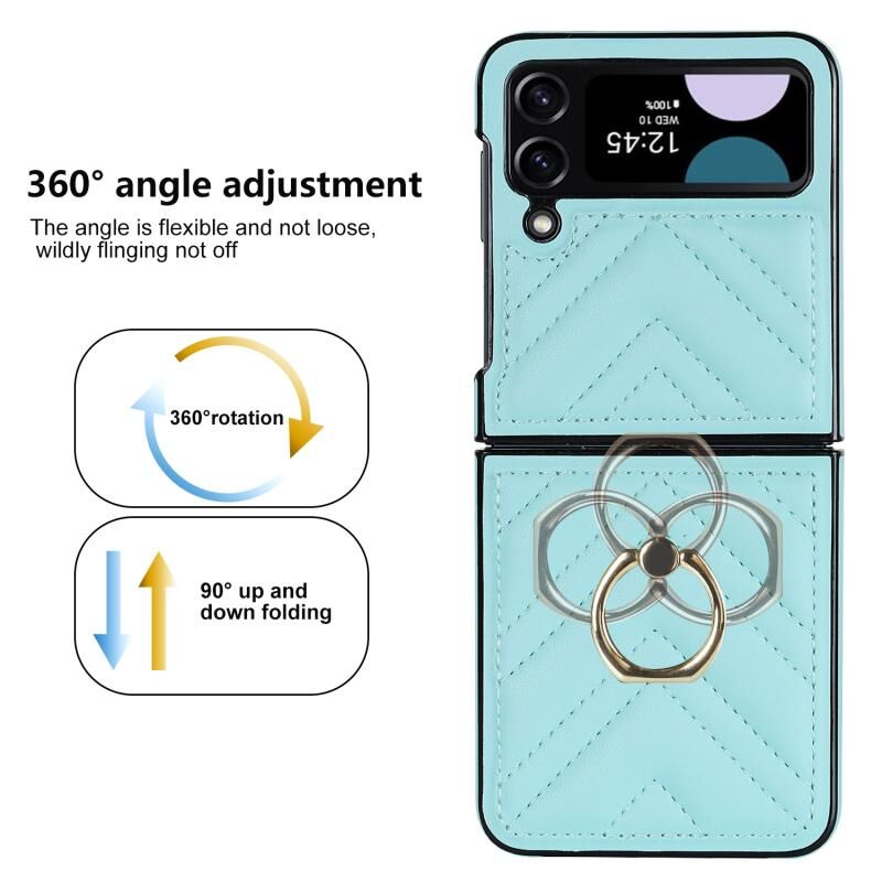 Για Samsung Galaxy Z Flip4 V-shaped Πτυσσόμενη προστατευτική θήκη τηλεφώνου με περιστρεφόμενο δακτύλιο (μπλε)