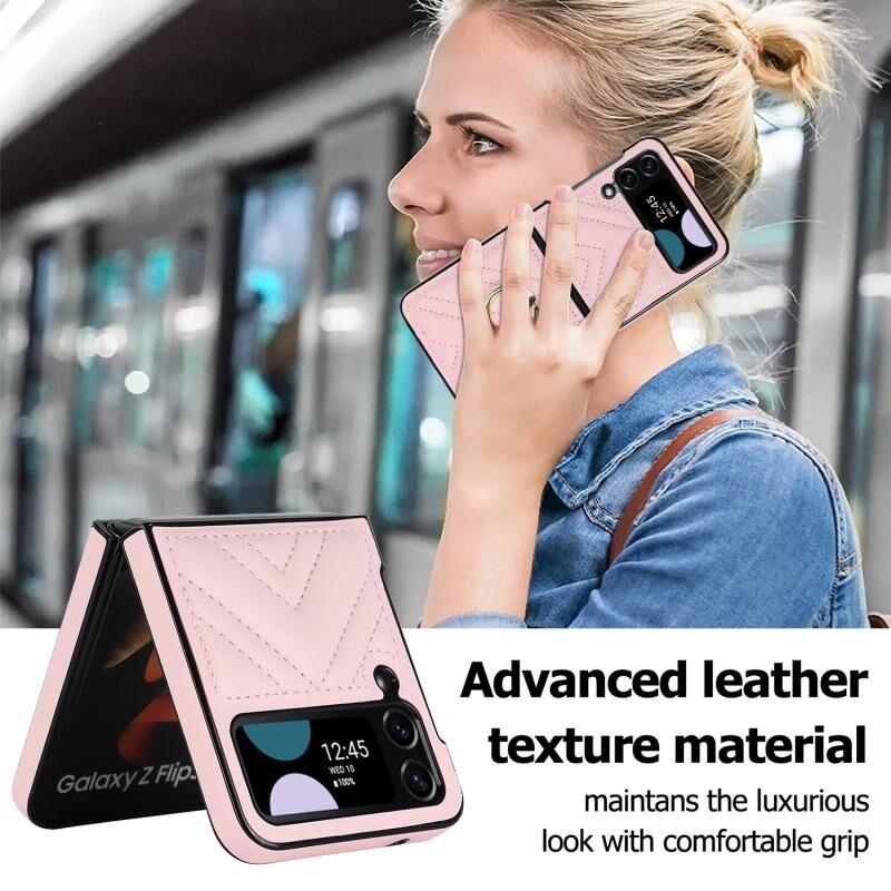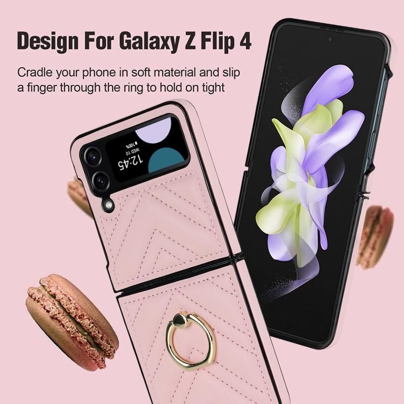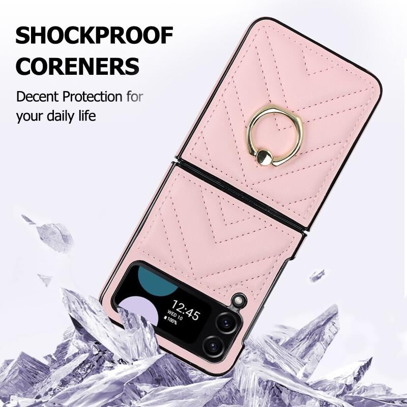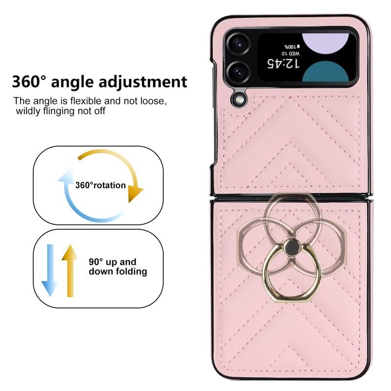 Για Samsung Galaxy Z Flip4 V-σχήμα Πτυσσόμενη προστατευτική θήκη τηλεφώνου με περιστρεφόμενο δακτύλιο (ροζ)