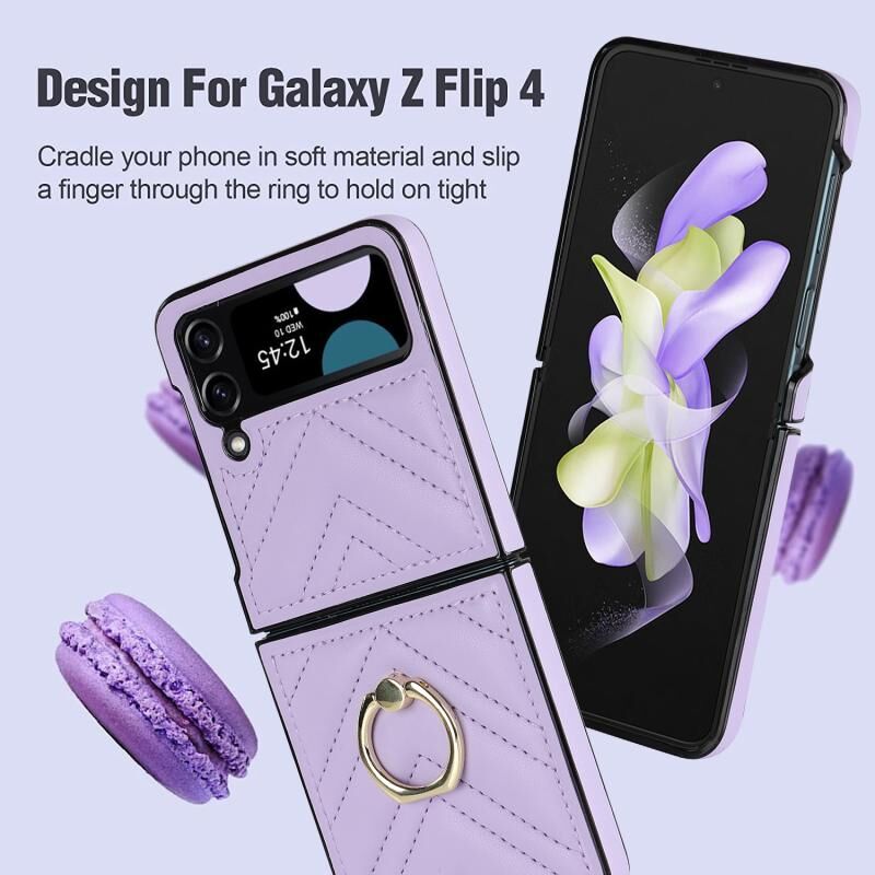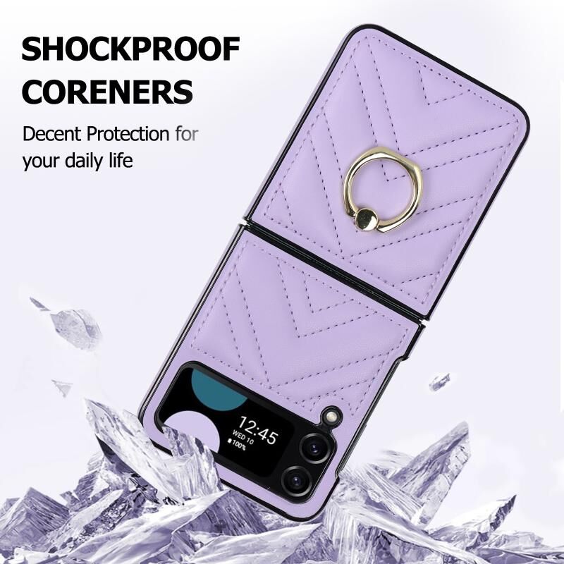 Για Samsung Galaxy Z Flip4 V-σχήμα Πτυσσόμενη προστατευτική θήκη τηλεφώνου με περιστρεφόμενο δακτύλιο (μωβ)
