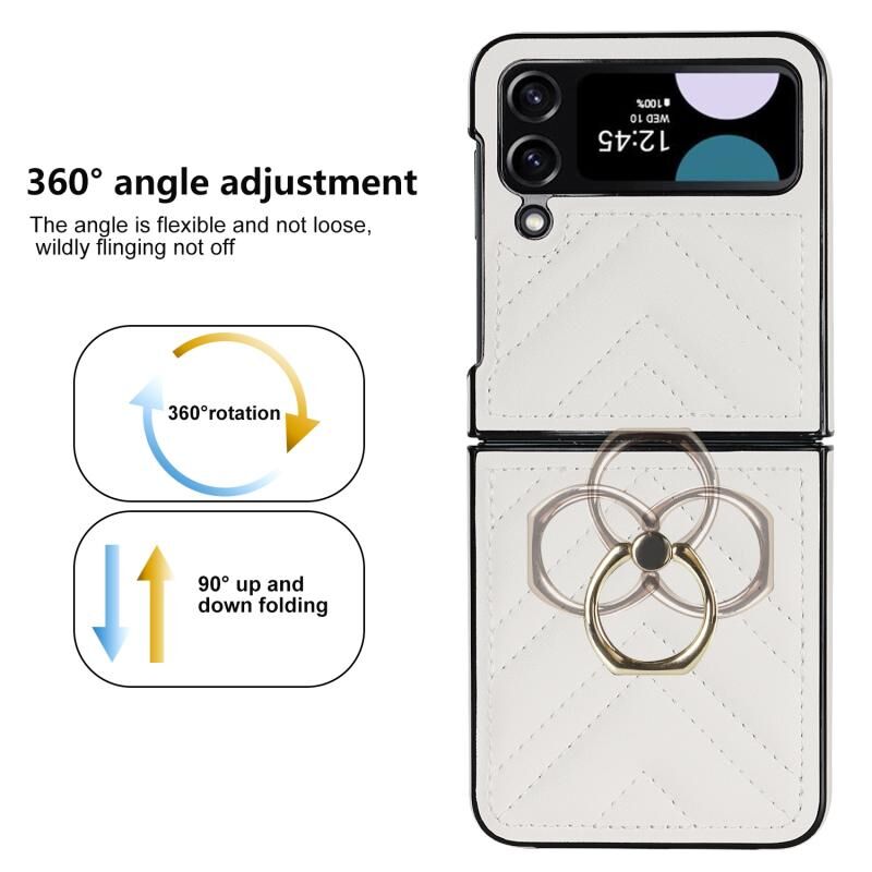 Για Samsung Galaxy Z Flip4 V-shaped Πτυσσόμενη προστατευτική θήκη τηλεφώνου με περιστρεφόμενο δακτύλιο (λευκό)