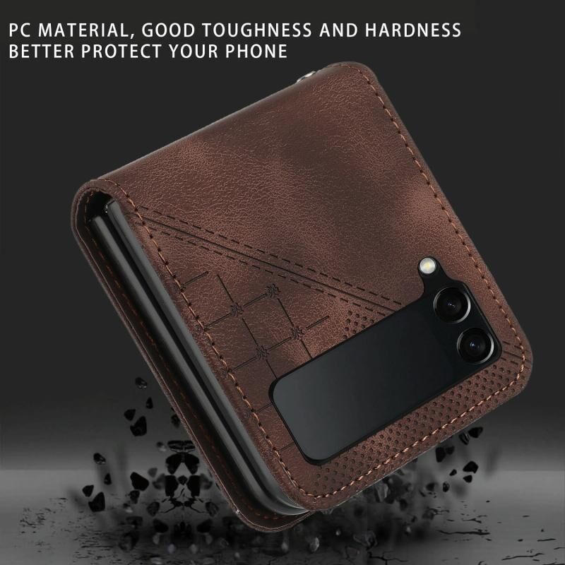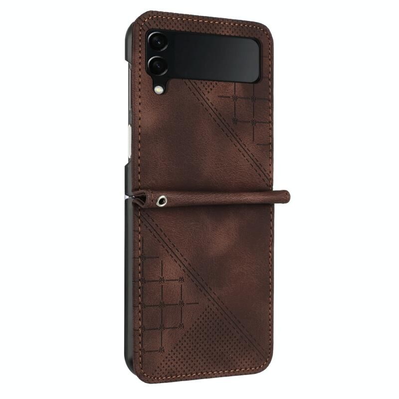 For Samsung Galaxy Z Flip4 YX0080 Grid Butterfly Embossed Pattern Flip Leather Phone Case with Lanyard(Coffee)