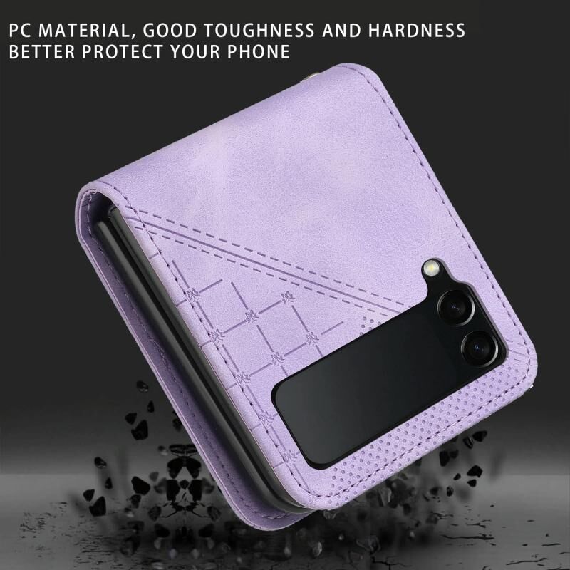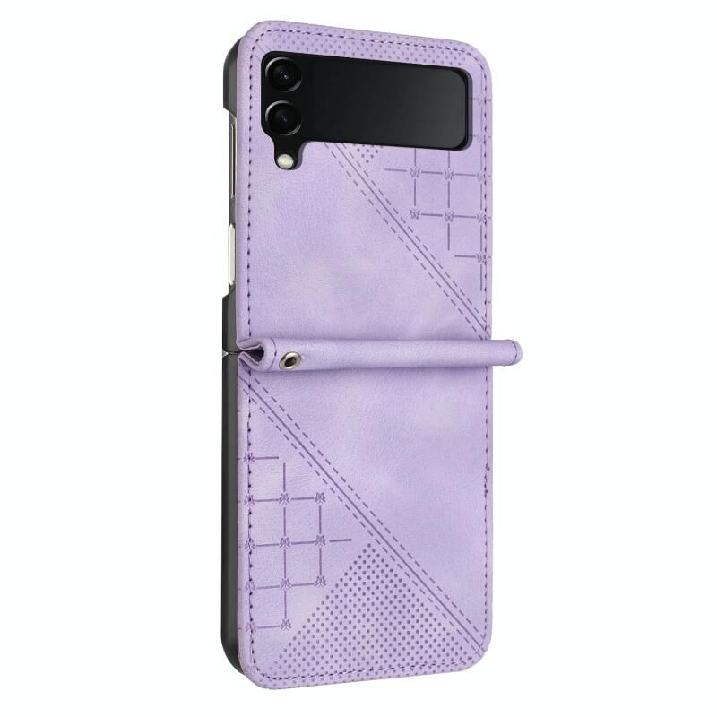 For Samsung Galaxy Z Flip4 YX0080 Grid Butterfly Embossed Pattern Flip Leather Phone Case with Lanyard(Light Purple)
