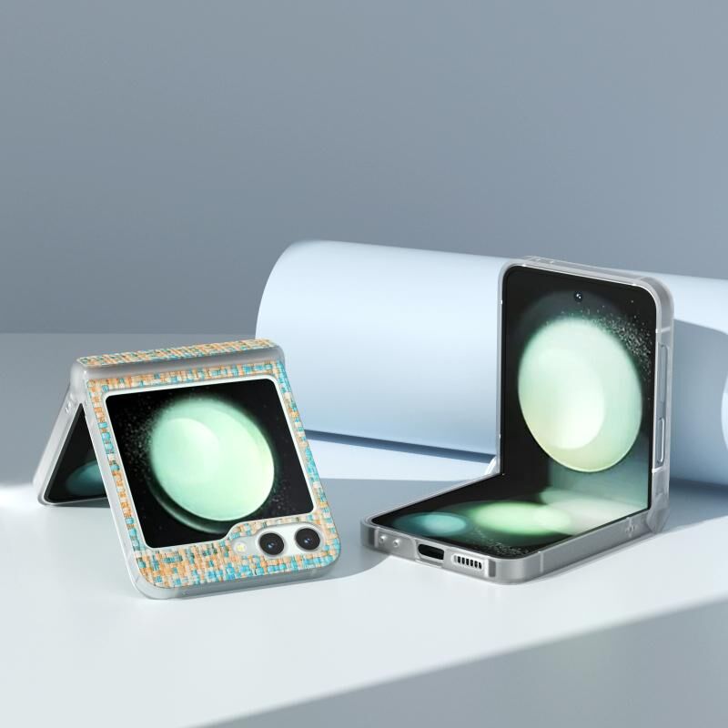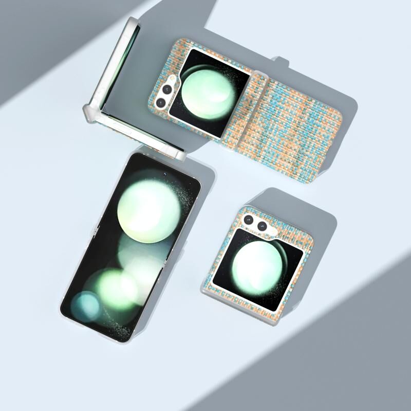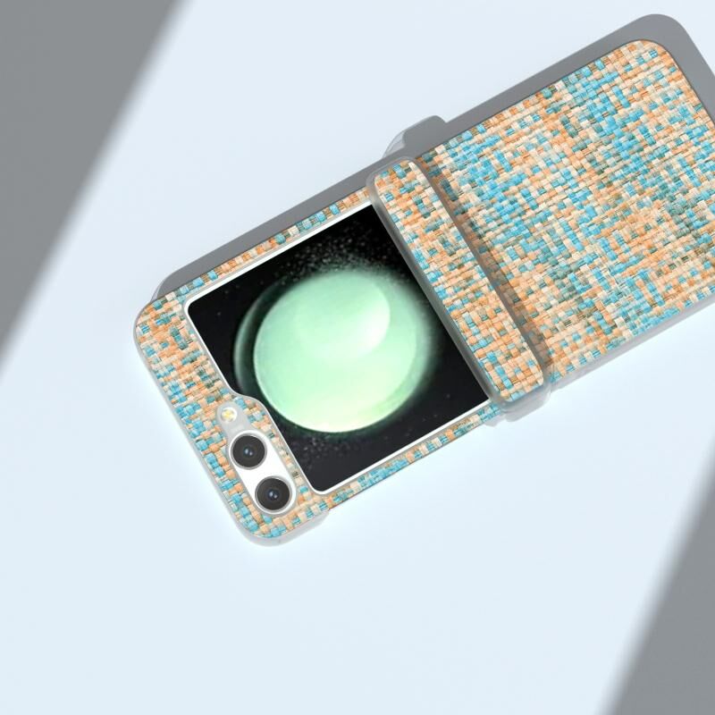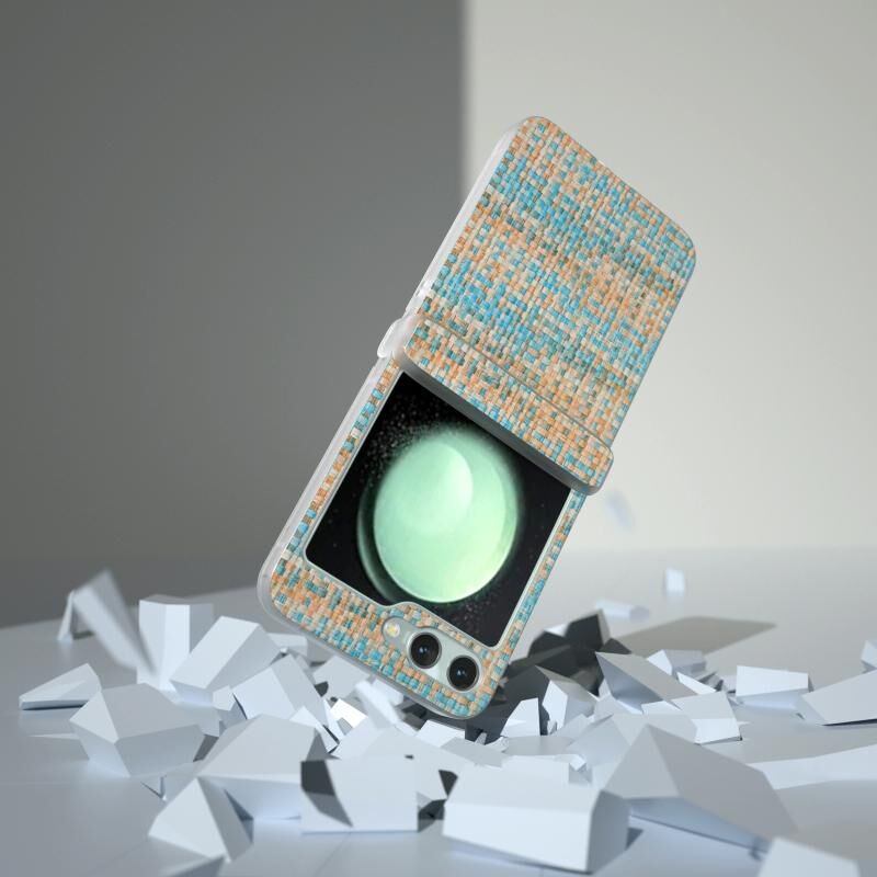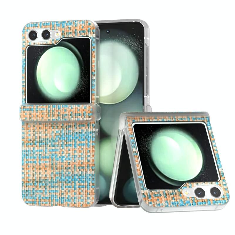 Για Samsung Galaxy Z Flip5 5G 3 σε 1 πολύχρωμο Rhombic υφή παγωμένο ημιδιαφανές πλαίσιο PU υπόθεση τηλεφώνου (μπλε)