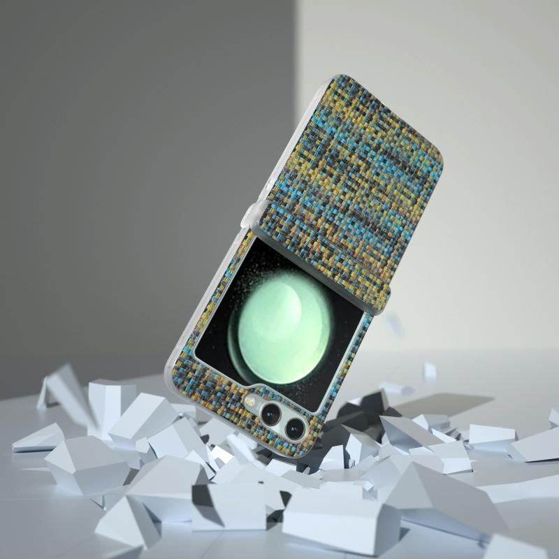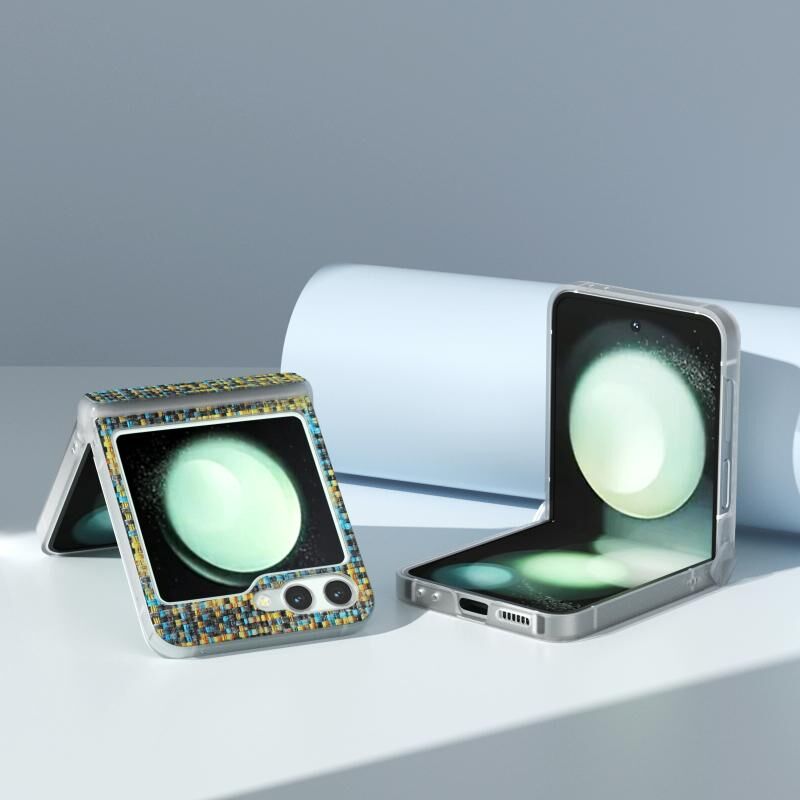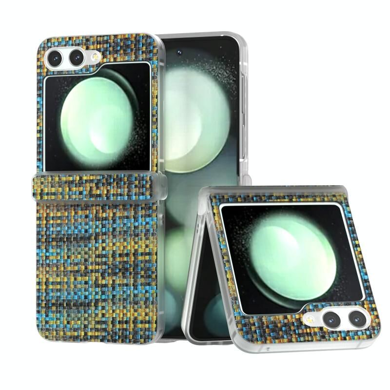 Για Samsung Galaxy Z Flip5 5G 3 σε 1 πολύχρωμο Rhombic υφή παγωμένο ημιδιαφανές πλαίσιο PU υπόθεση τηλεφώνου (χρυσό)