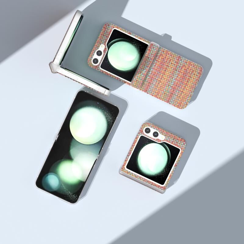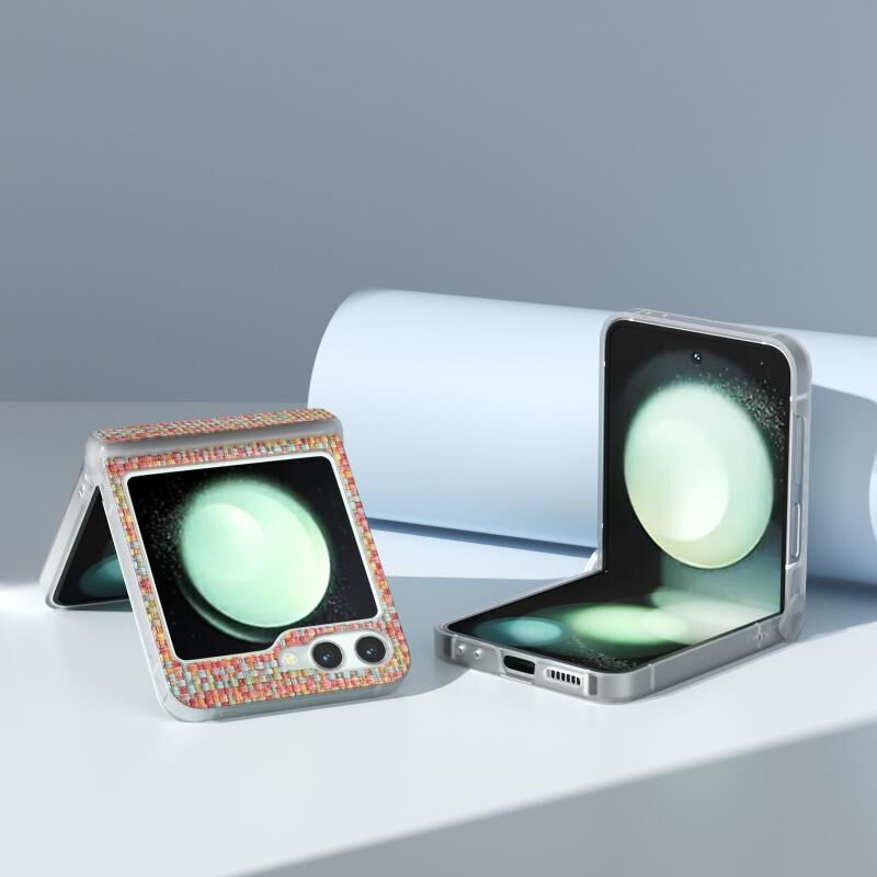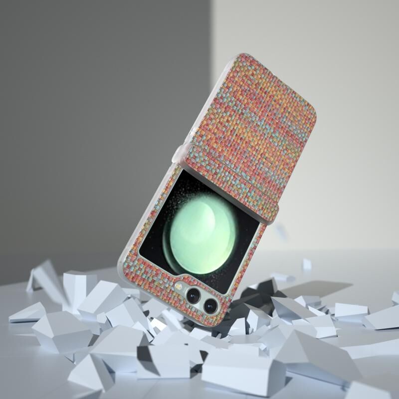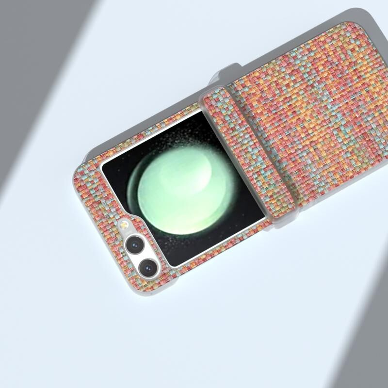 Για Samsung Galaxy Z Flip5 5G 3 σε 1 πολύχρωμο Rhombic υφή παγωμένο ημιδιαφανές πλαίσιο PU υπόθεση τηλεφώνου (πορτοκαλί κόκκινο)