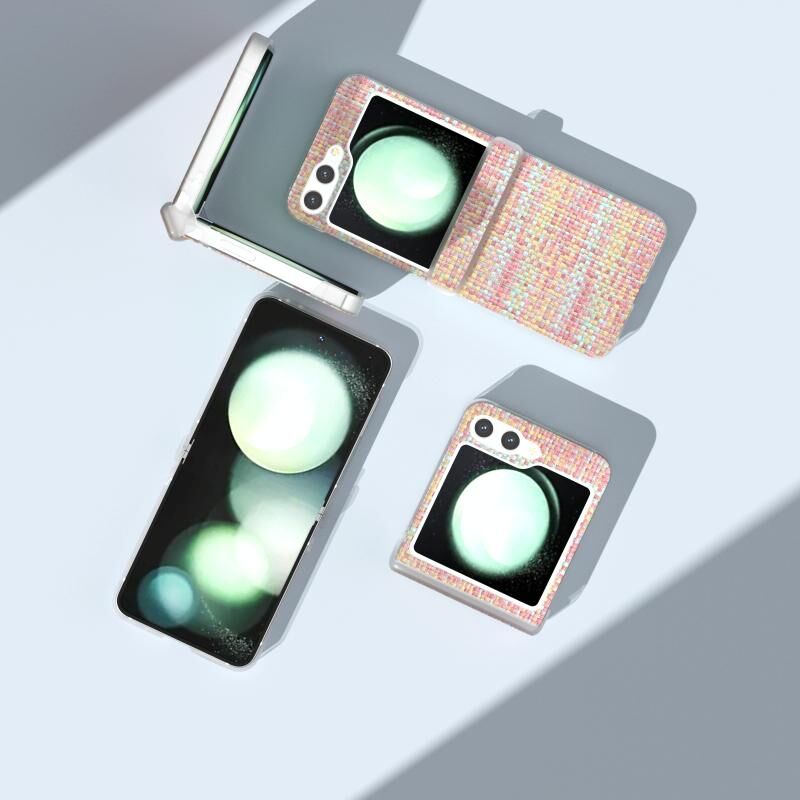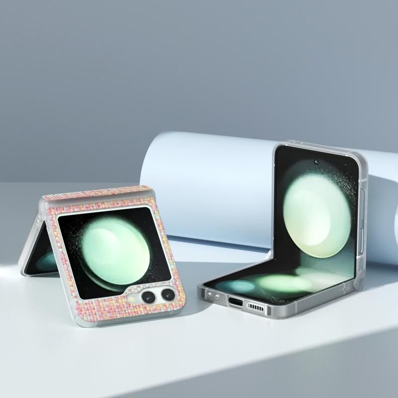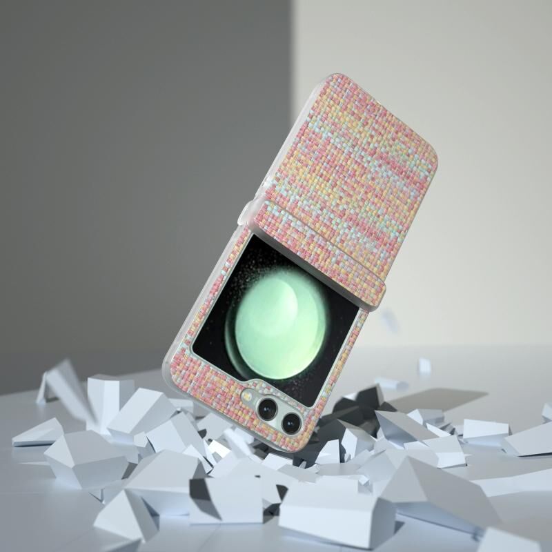 Για Samsung Galaxy Z Flip5 5G 3 σε 1 πολύχρωμο Rhombic υφή παγωμένο ημιδιαφανές πλαίσιο PU υπόθεση τηλεφώνου (ροζ)