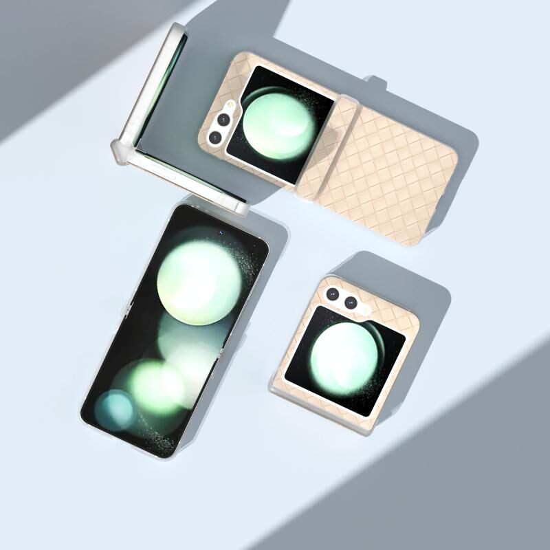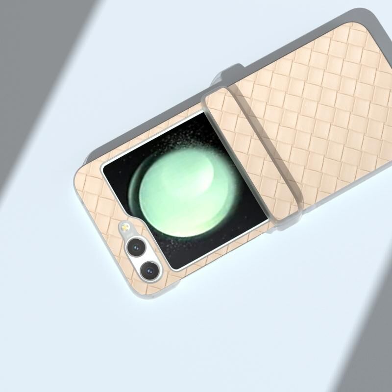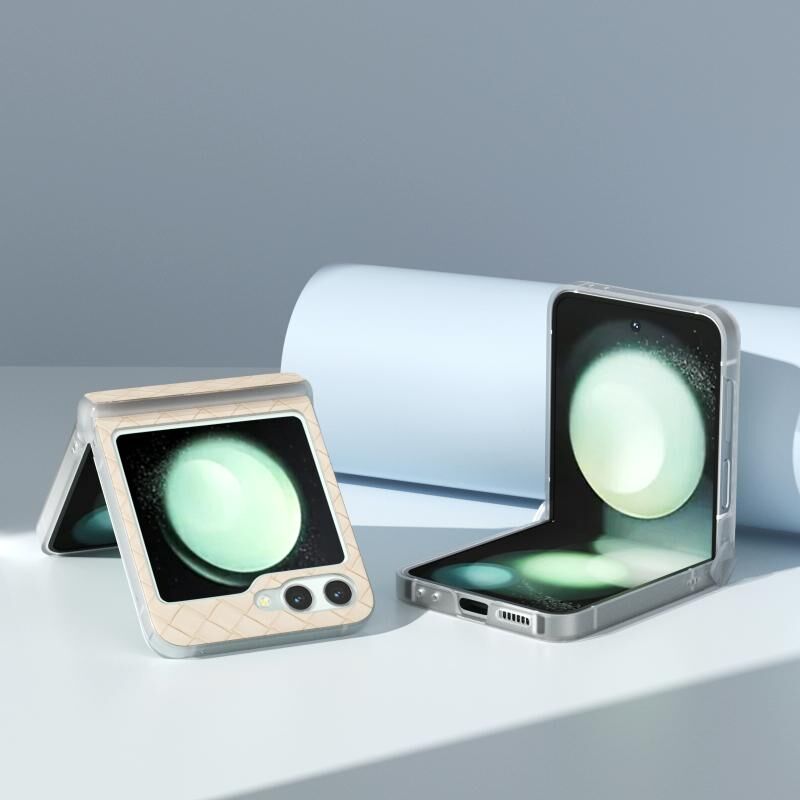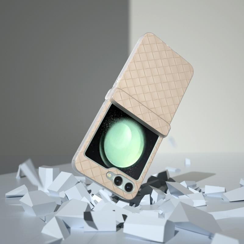 Για το Samsung Galaxy Z Flip5 5G 3 σε 1 υφασμάτινη υφή παγωμένο ημιδιαφανές πλαίσιο PU υπόθεση τηλεφώνου (μπεζ)