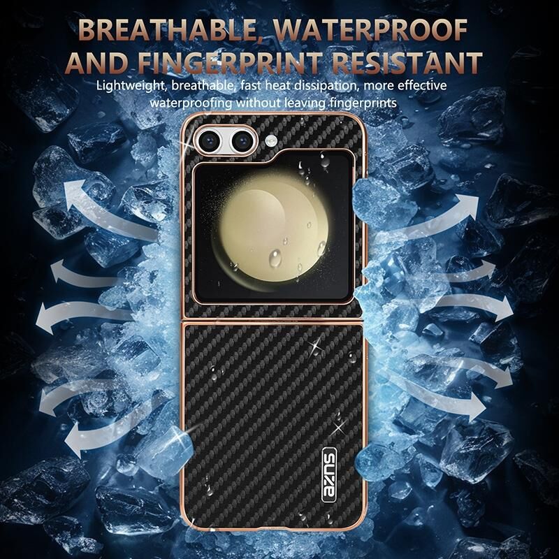 Θήκη τηλεφώνου με ηλεκτρολυτική επιμετάλλωση και υφή ανθρακονήματος για Samsung Galaxy Z Flip5 5G (Καφέ) (AZNS)