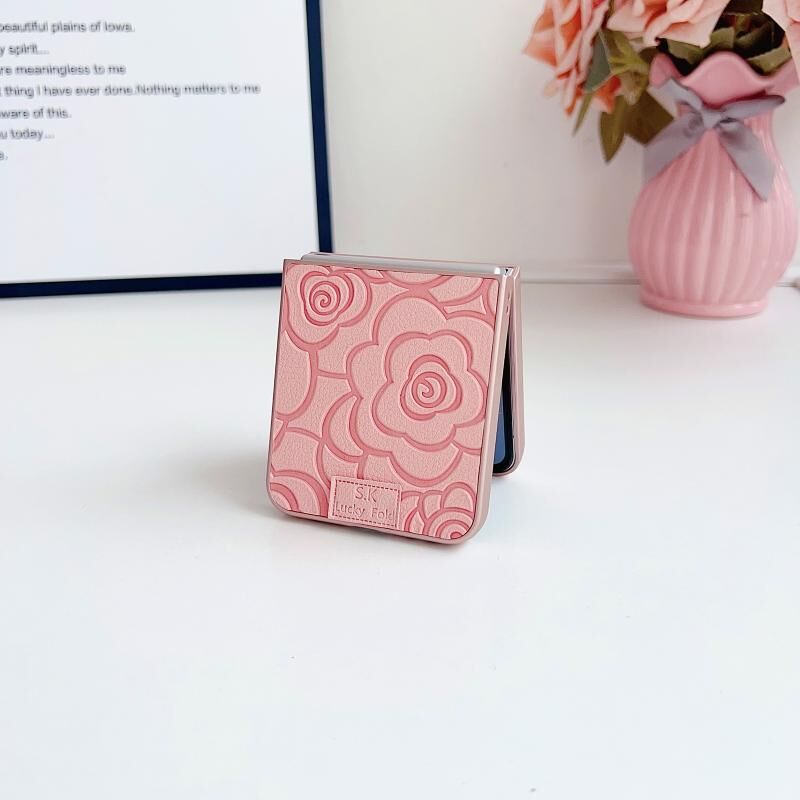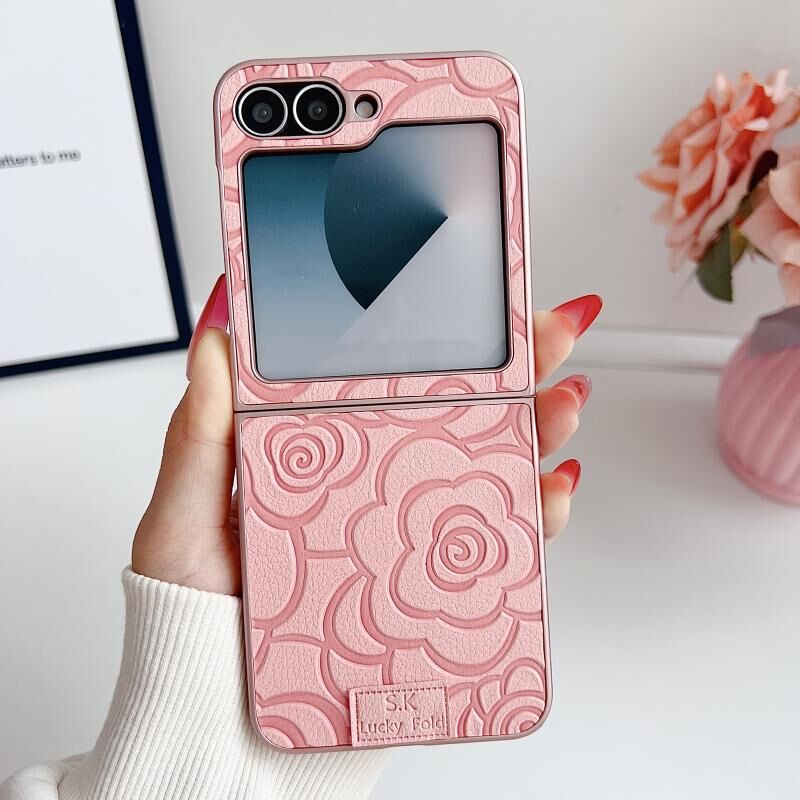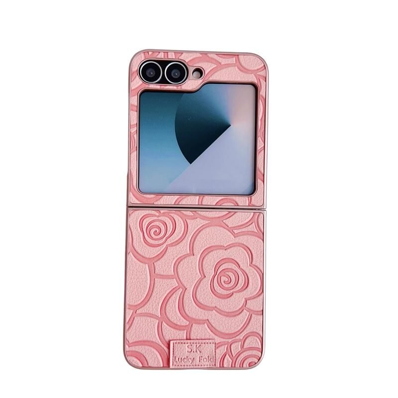 Θήκη τηλεφώνου DIY από πολυανθρακικό υλικό με καρό καμέλια για Samsung Galaxy Z Flip5 5G (Λευκό)