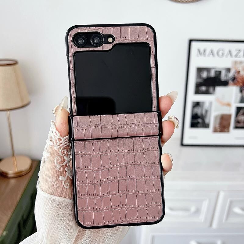 Θήκη για Samsung Galaxy Z Flip5 5G με σχέδιο κροκόδειλου από πολυανθρακικό υλικό, αναδιπλούμενη, με άρθρωση (Ροζ Μωβ)