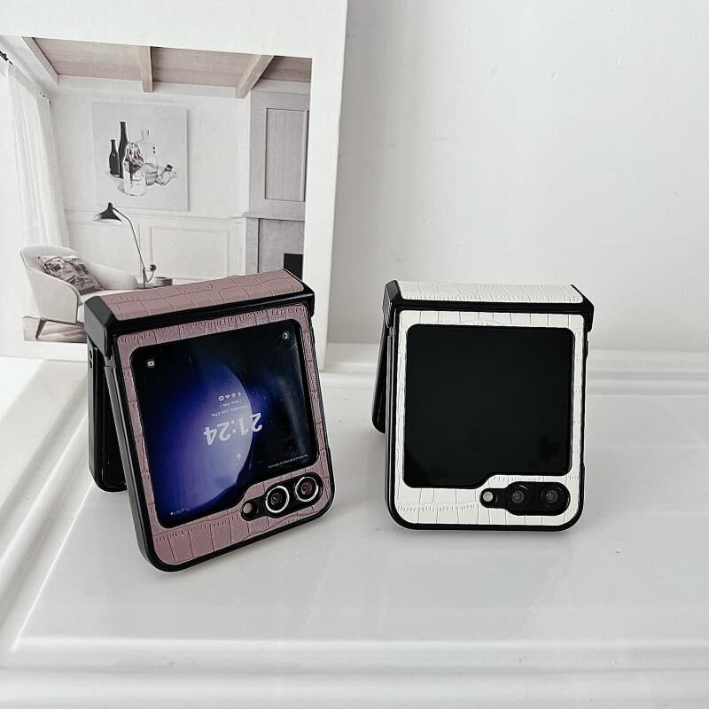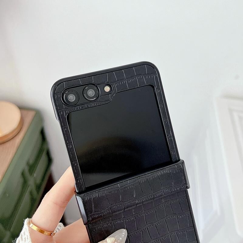 Θήκη για Samsung Galaxy Z Flip5 5G με σχέδιο κροκόδειλου από πολυανθρακικό υλικό, αναδιπλούμενη, με άρθρωση (Μαύρο)