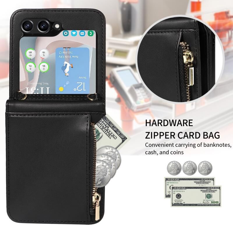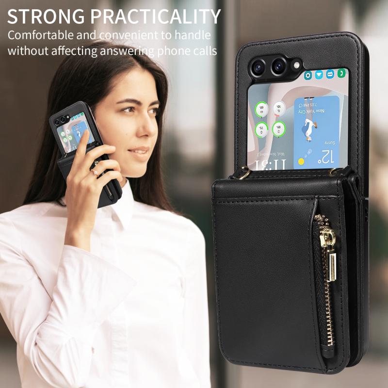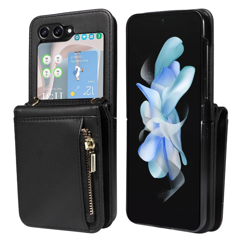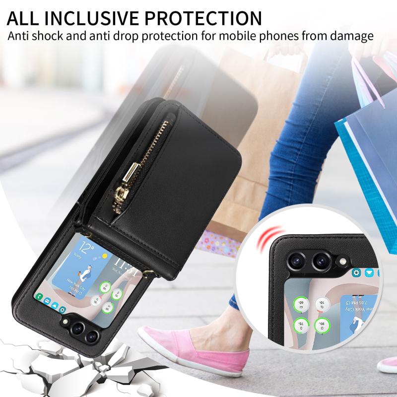 For Samsung Galaxy Z Flip5 5G Crossbody Lanyard Zipper Wallet Leather Phone Case(Black)