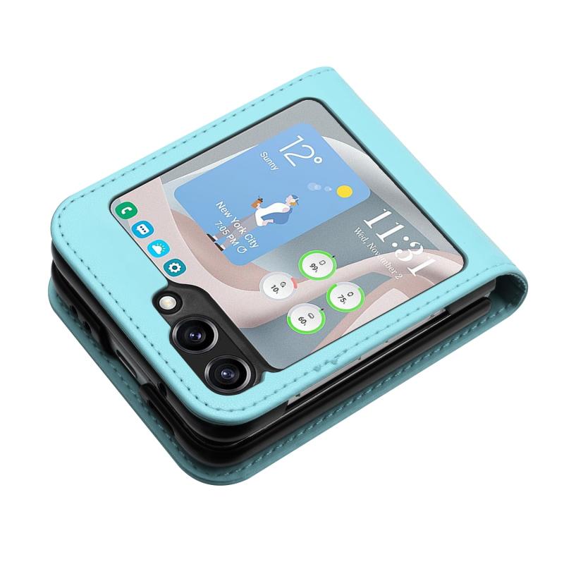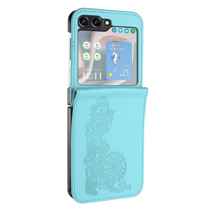 For Samsung Galaxy Z Flip5 5G Datura Flower Embossed Flip Leather Phone Case(Light blue)