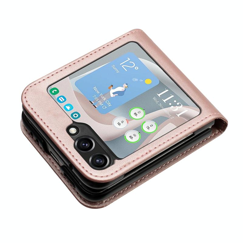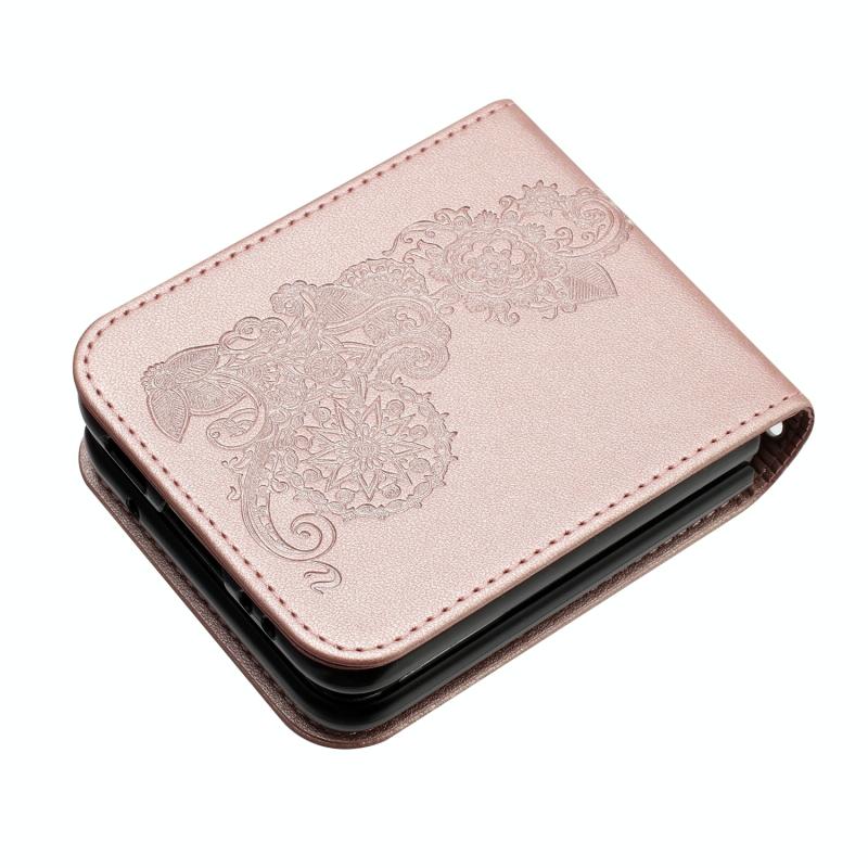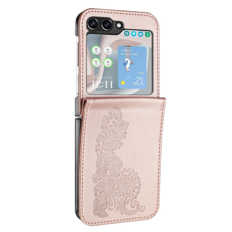 For Samsung Galaxy Z Flip5 5G Datura Flower Embossed Flip Leather Phone Case(Rose Gold)