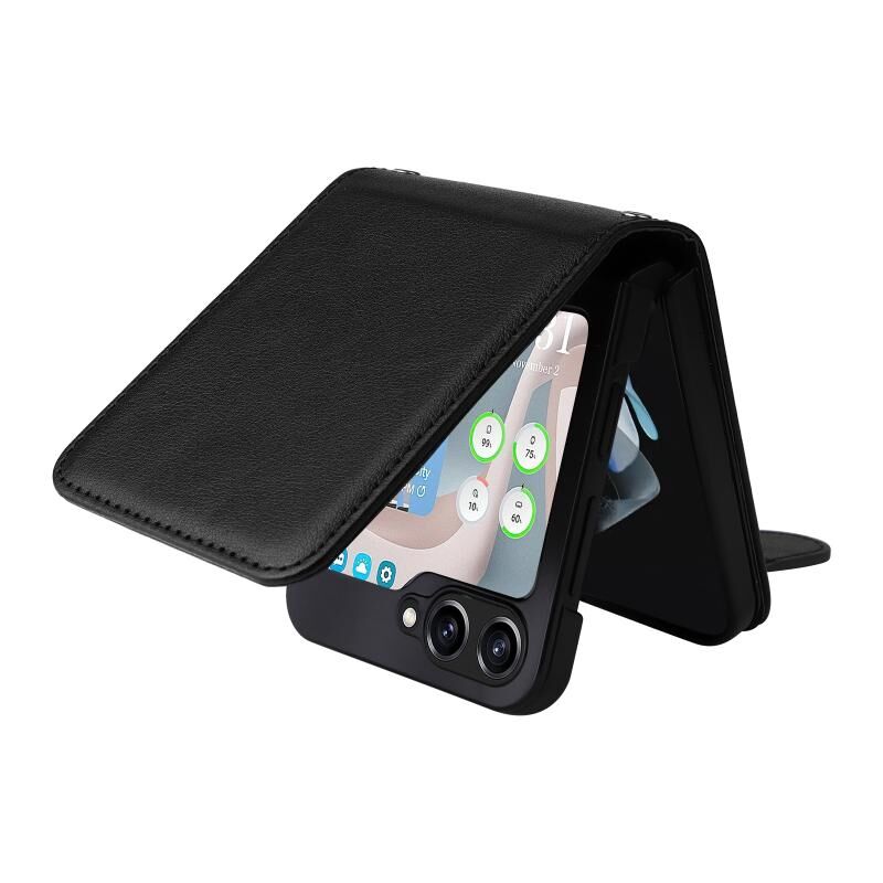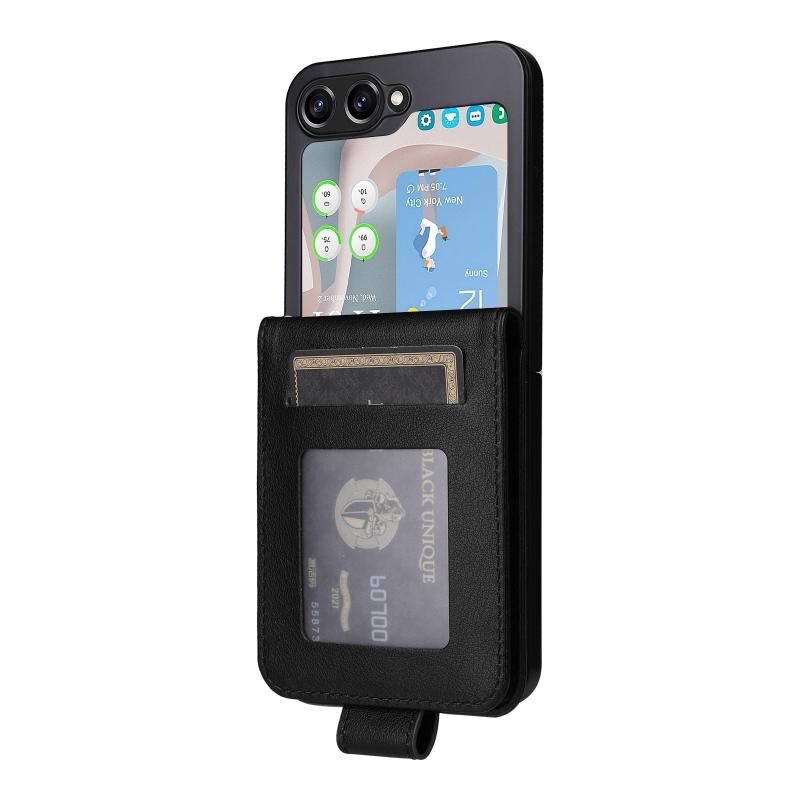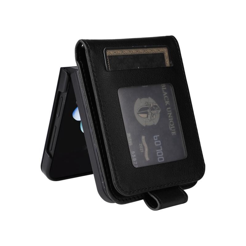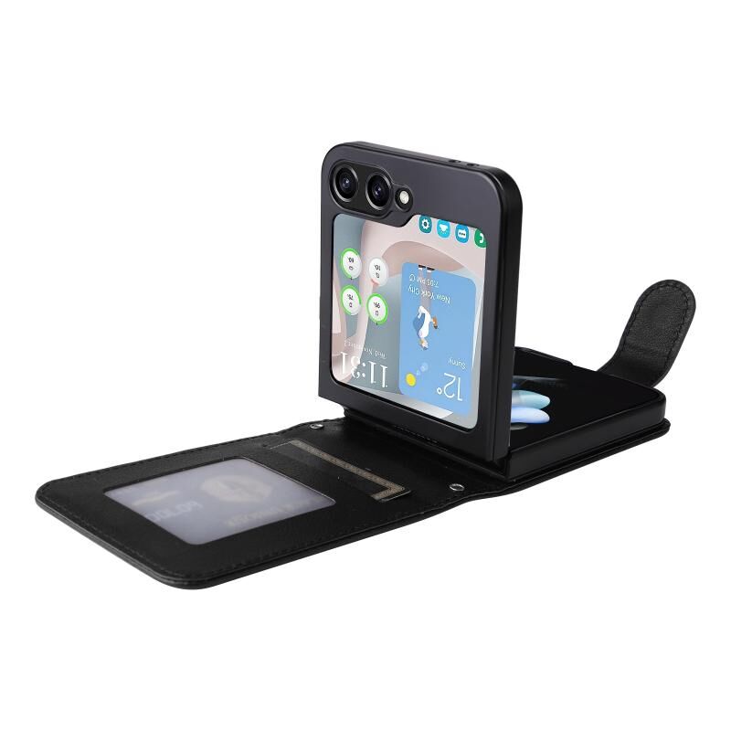 Για Samsung Galaxy Z Flip5 5G Πολυλειτουργική οριζόντια Flip δερμάτινη θήκη τηλεφώνου με τρεις υποδοχές για κάρτες (μαύρο)