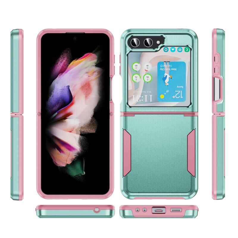 Για Samsung Galaxy Z Flip5 5G Pioneer Armor βαρέως τύπου PC + TPU υπόθεση τηλεφώνου (πράσινο ροζ)