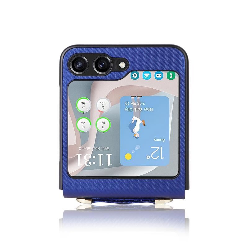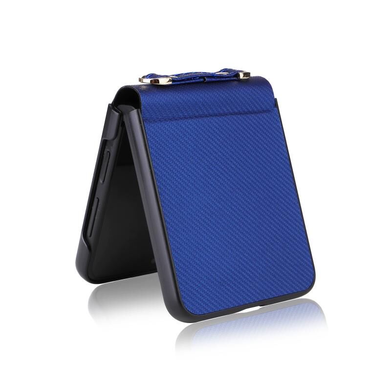 For Samsung Galaxy Z Flip5 5G PU Leather PC Phone Case with Lanyard(Blue)
