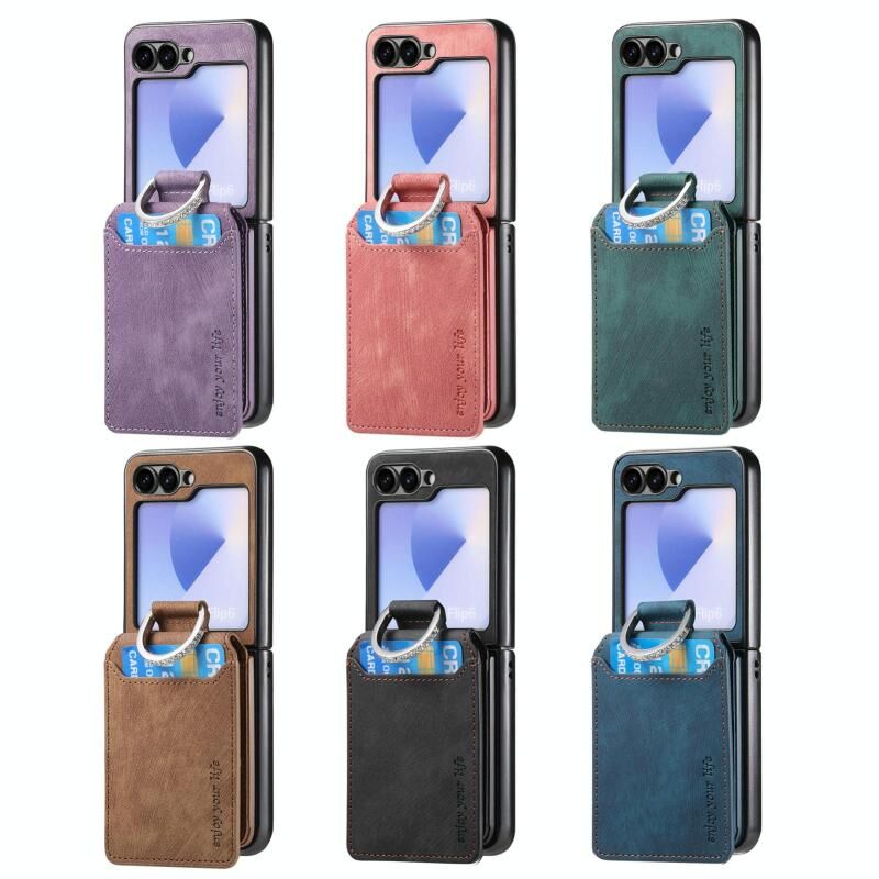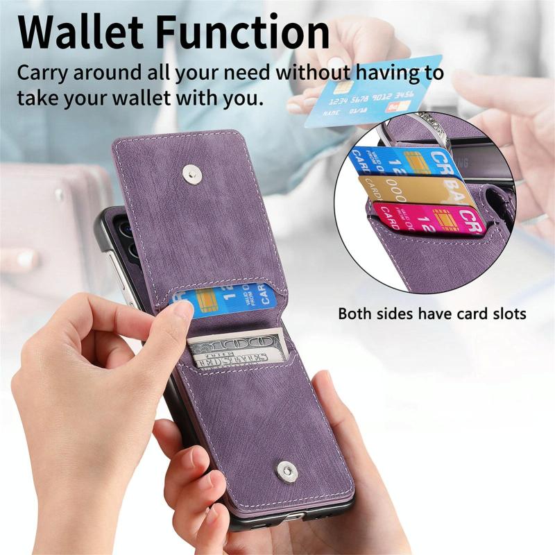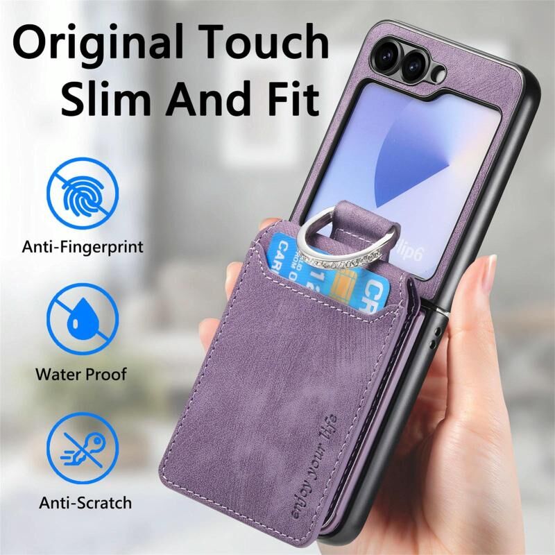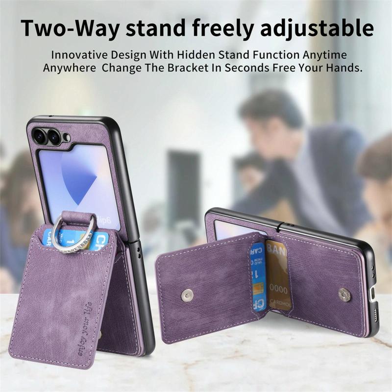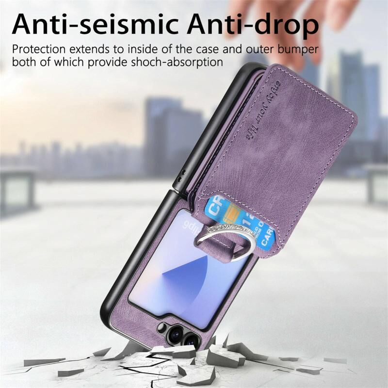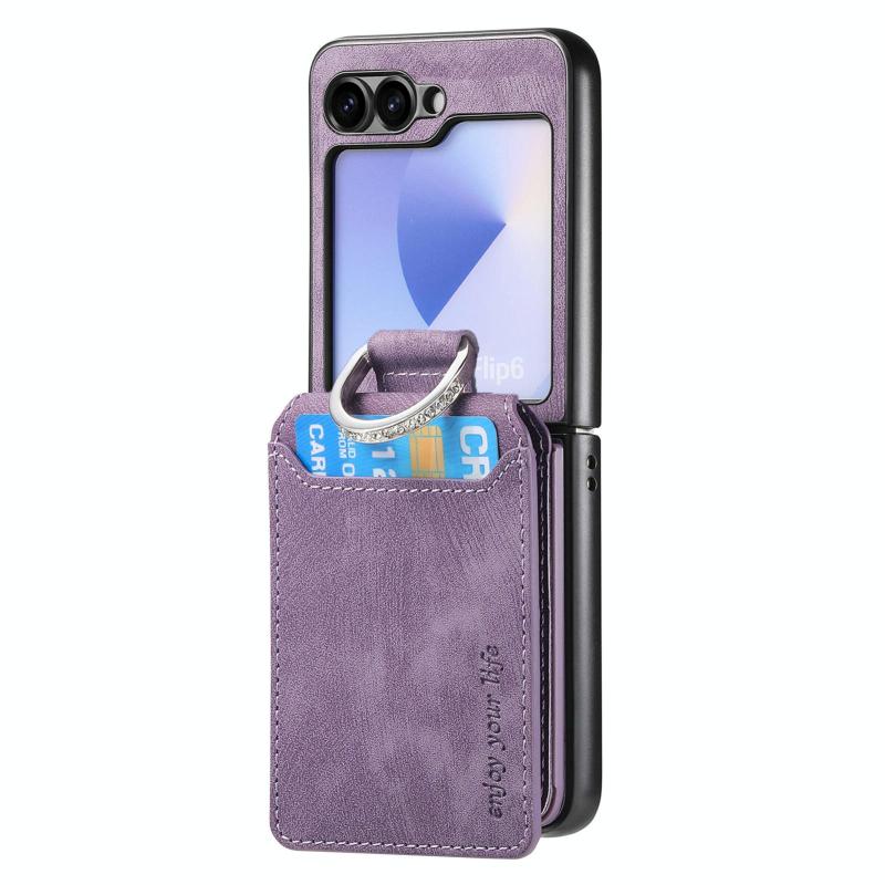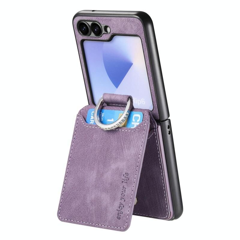 Θήκη πορτοφόλι με δέρμα και δακτύλιο για Samsung Galaxy Z Flip5 5G (Μωβ)