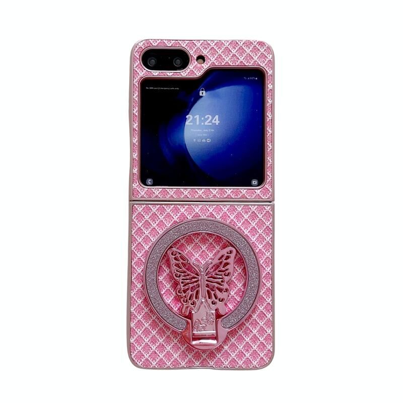 Θήκη τηλεφώνου για Samsung Galaxy Z Flip5 5G με Λαμπερό Διαμαντένιο Ρομβοειδές σχέδιο από PC με Στήριξη (Ροζ)