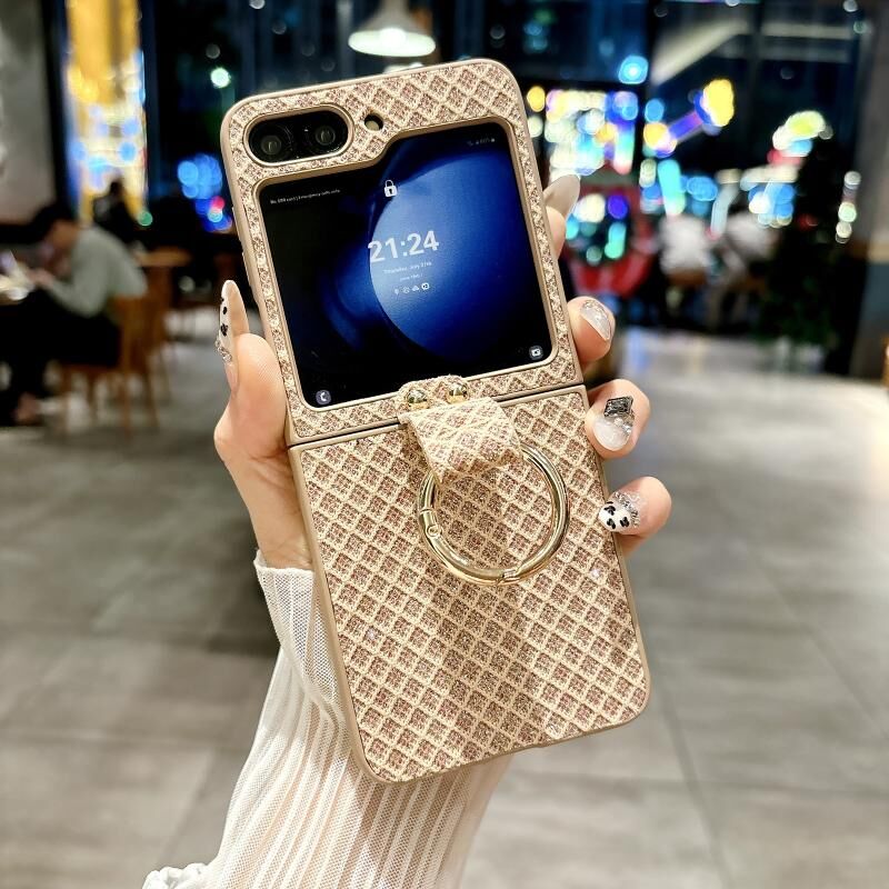 Θήκη τηλεφώνου για Samsung Galaxy Z Flip5 5G, Διαφανής Διαμαντένια Ρομβοειδής από PC με Δαχτυλίδι (Μαύρο)