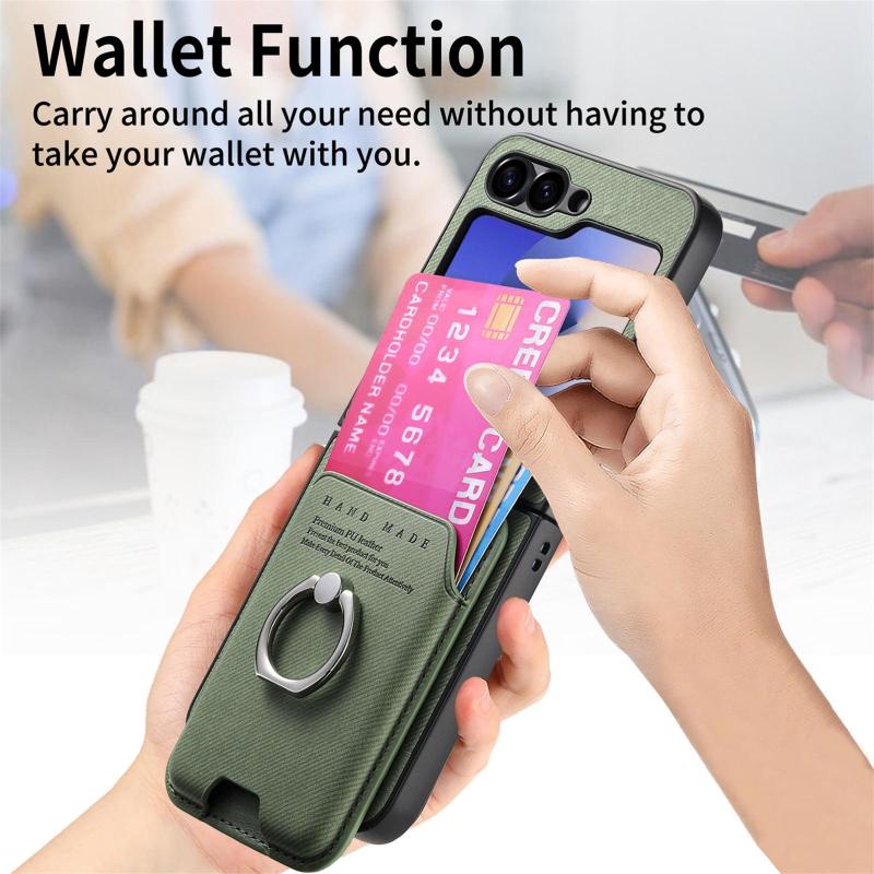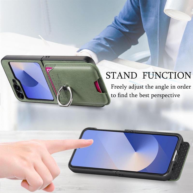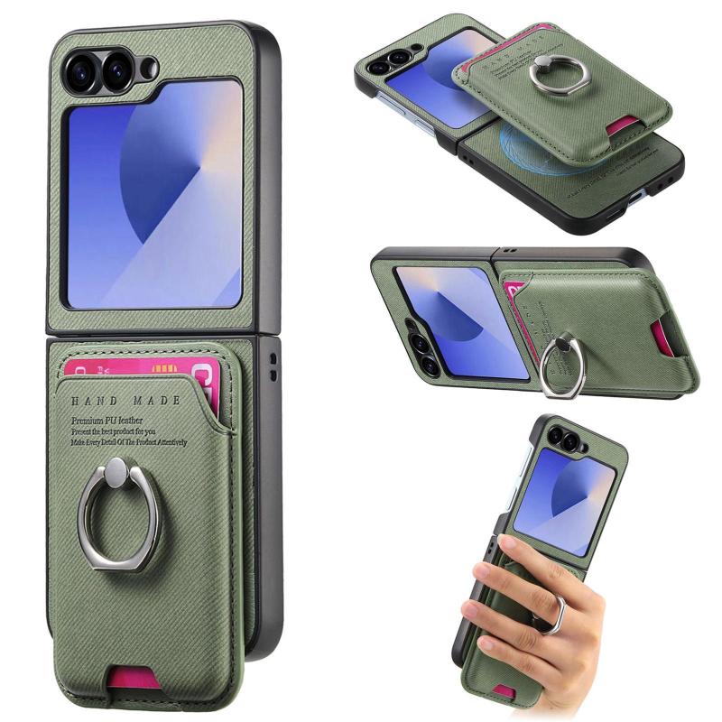 Για Samsung Galaxy Z Flip5 5G Θήκη Κάρτας με Δαχτυλίδι & Μαγνητικό Κλείσιμο (Πράσινο)
