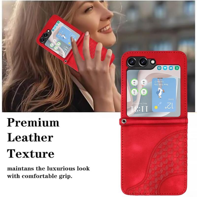 Για το Samsung Galaxy Z Flip5 5G YX0060 Elephant Head ανάγλυφο κεφάλι τηλέφωνο δερμάτινη θήκη με κορδόνι (κόκκινο)