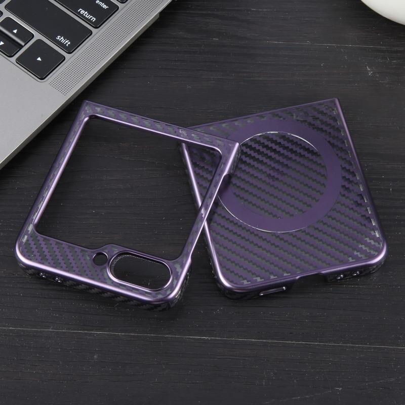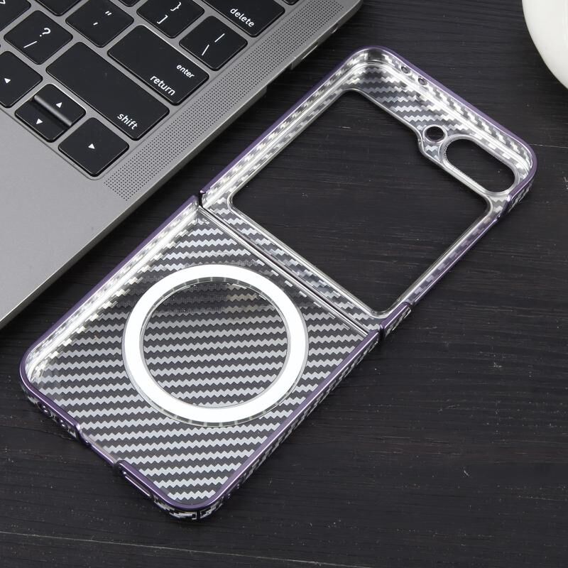 Θήκη κινητού τηλεφώνου Samsung Galaxy Z Flip5 6D με επικάλυψη ανθρακονήματος, διαφανής, με MagSafe, από PC (Μωβ Aurora)
