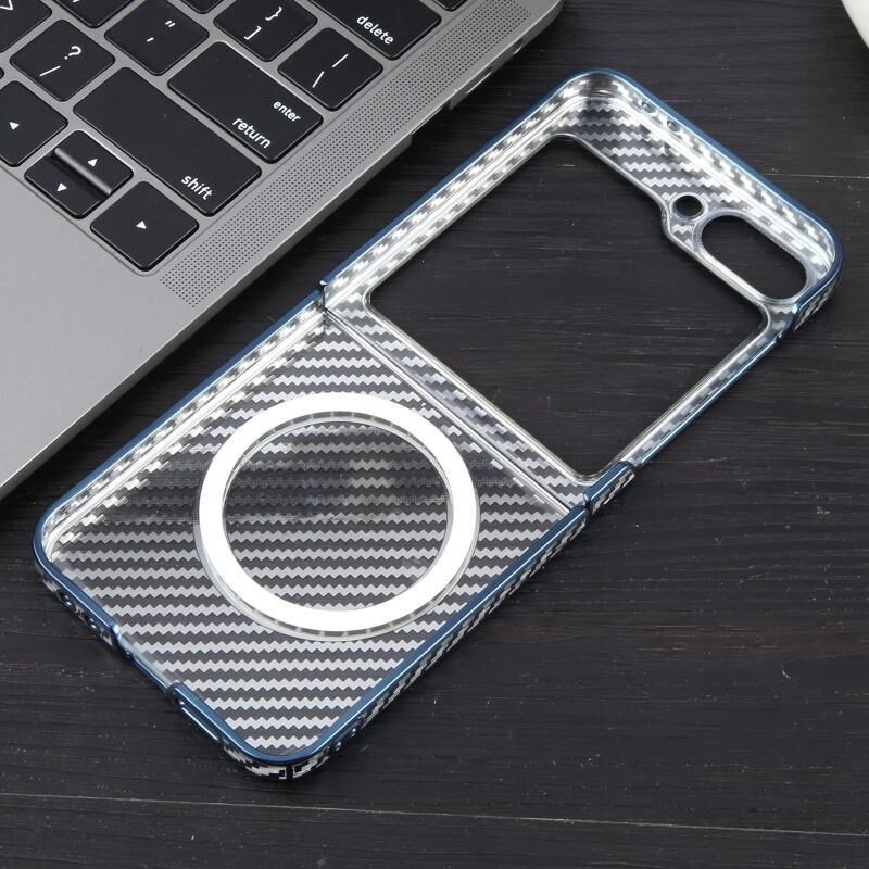 Θήκη κινητού τηλεφώνου Samsung Galaxy Z Flip5 6D με επικάλυψη ανθρακονήματος, διαφανής, με MagSafe, από PC (Μωβ Aurora)