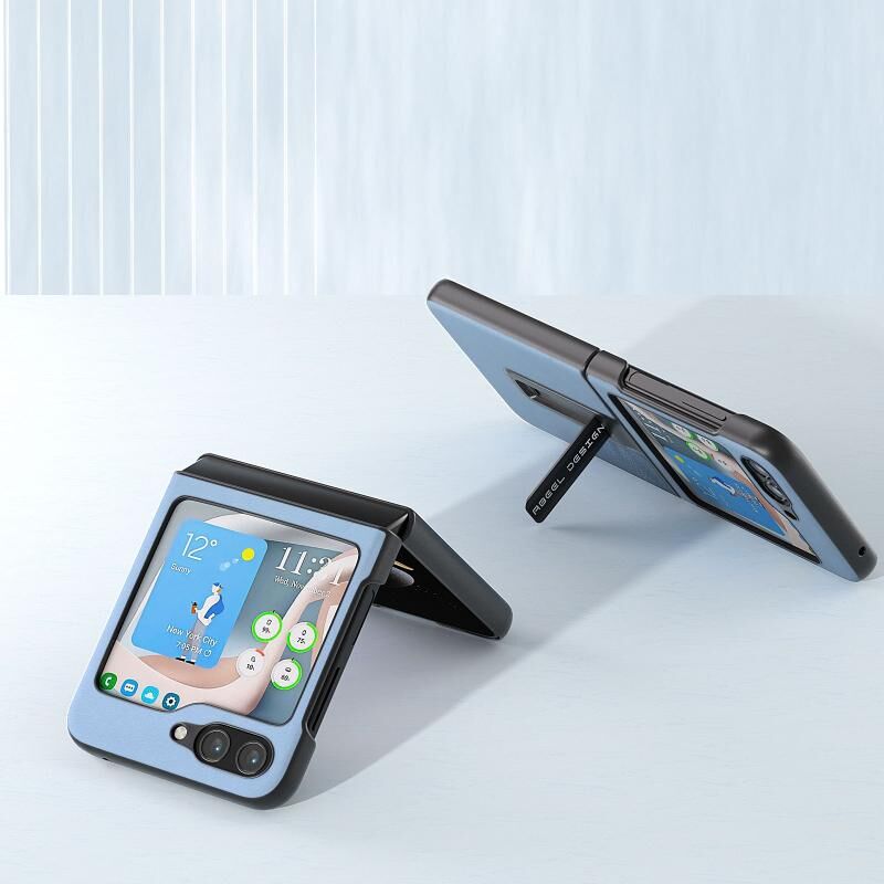 Θήκη κινητού τηλεφώνου Samsung Galaxy Z Flip5 ABEEL Arashi Texture PU με βάση στήριξης (Γαλάζιο Κουρτίνα)