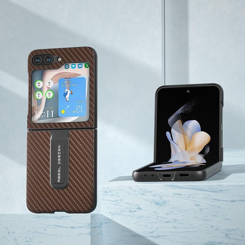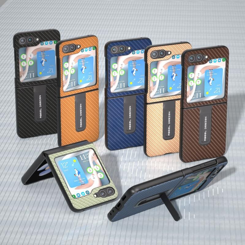 Θήκη προστασίας κινητού τηλεφώνου με υφή ανθρακονήματος για Samsung Galaxy Z Flip5 ABEEL με βάση στήριξης (Πράσινο)