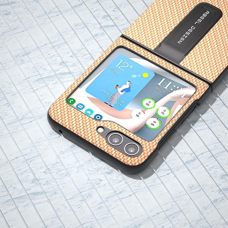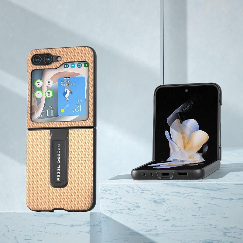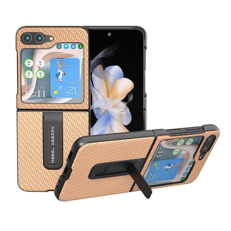 Θήκη προστασίας κινητού τηλεφώνου με υφή ανθρακονήματος για Samsung Galaxy Z Flip5 ABEEL με βάση στήριξης (Πράσινο)