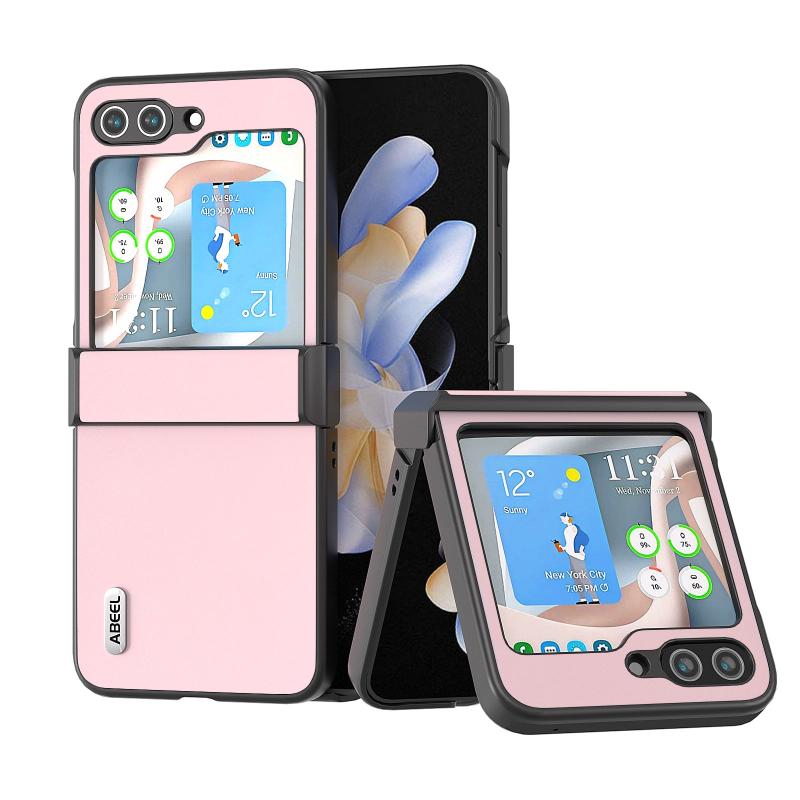 Για Samsung Galaxy Z Flip5 ABEEL Θήκη PU με Υφή Δέρματος (Ροζ)