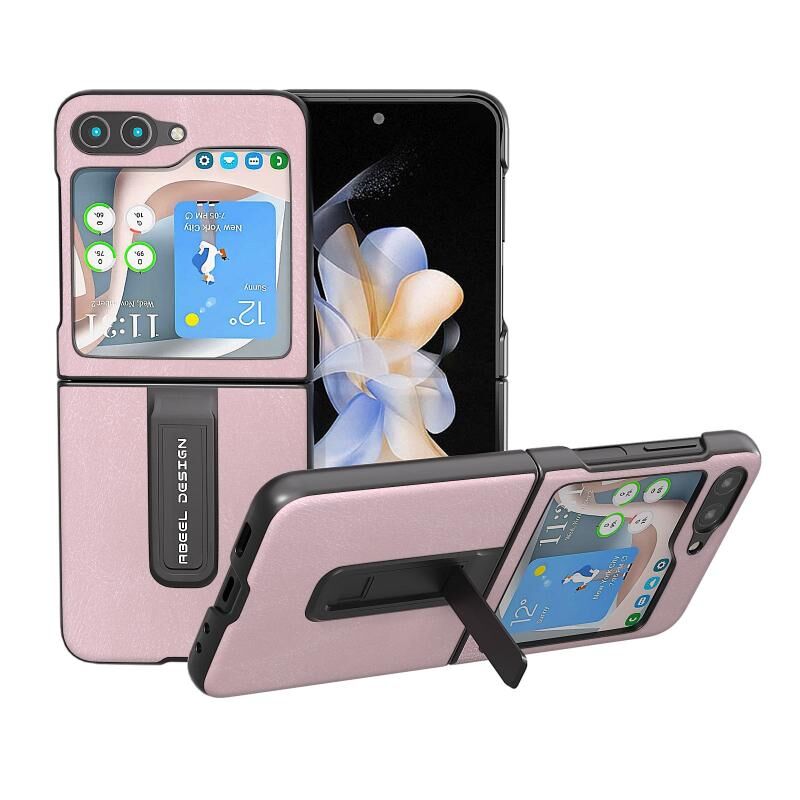 Θήκη τηλεφώνου για Samsung Galaxy Z Flip5 ABEEL με υφή δέρματος αγελάδας από PU με βάση στήριξης (Ροζ)