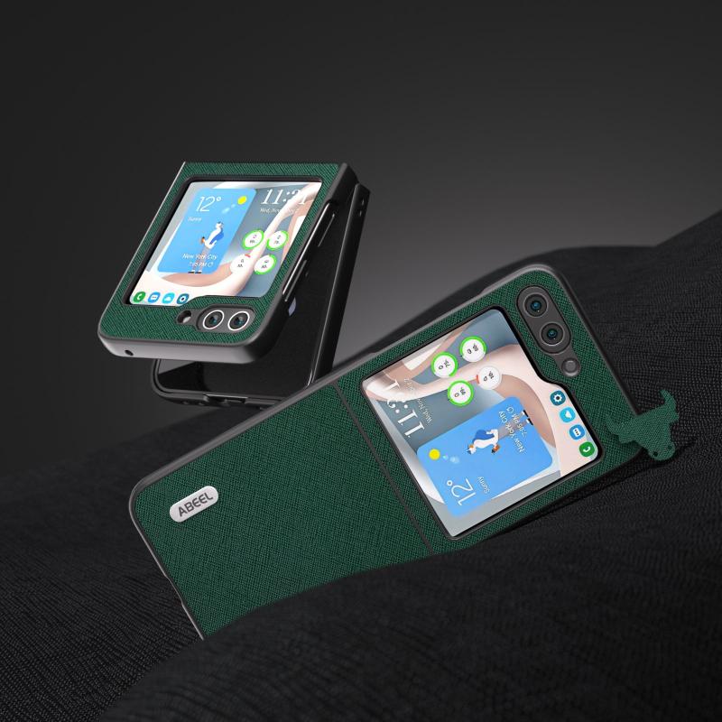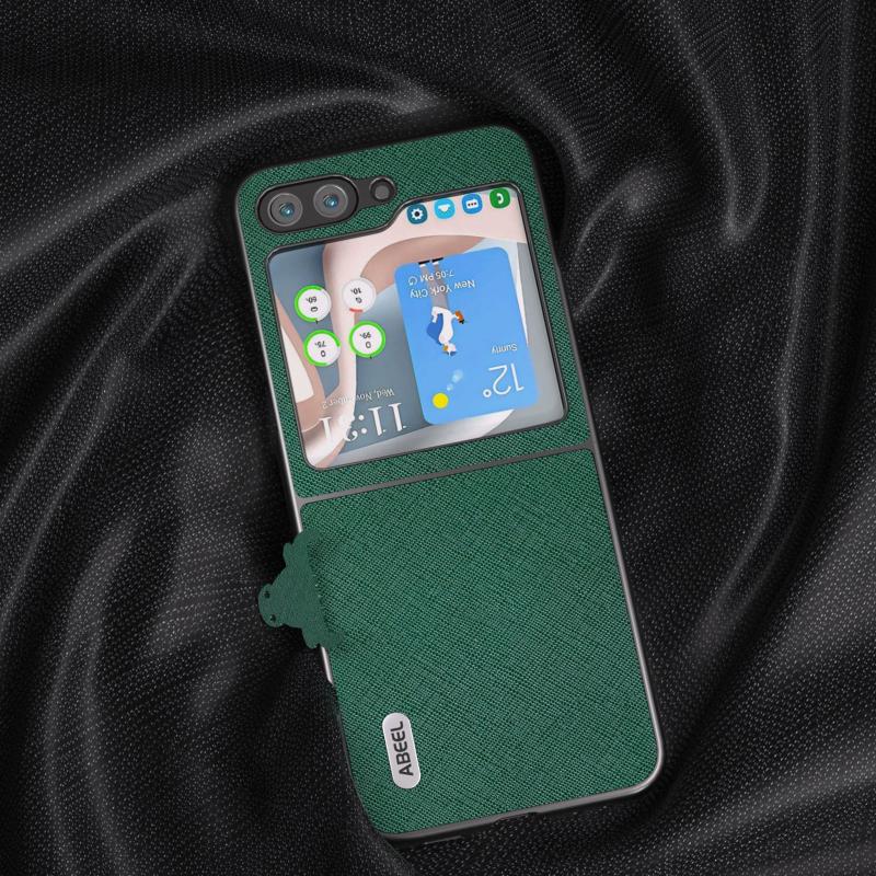 For Samsung Galaxy Z Flip5 ABEEL Cross Texture Genuine Leather Phone Case(Green)