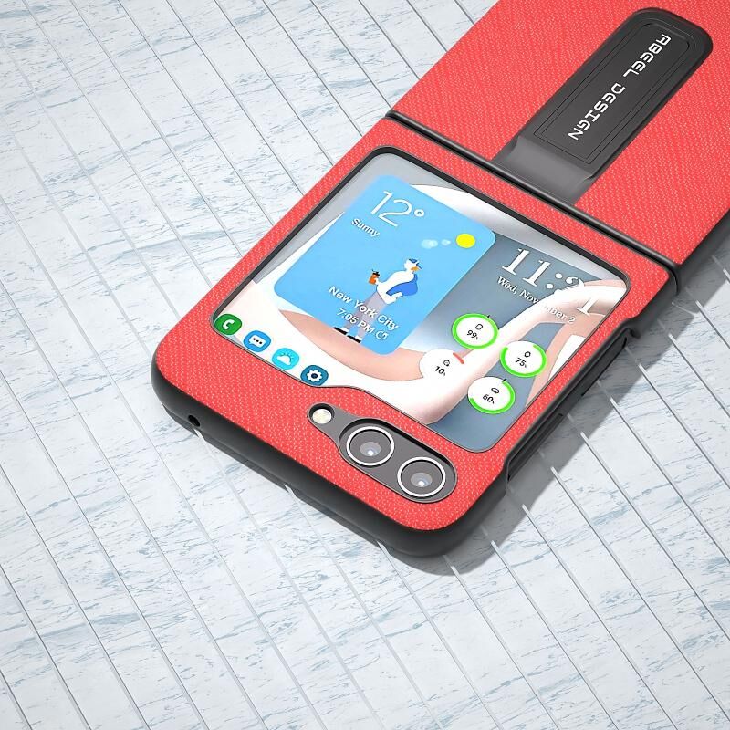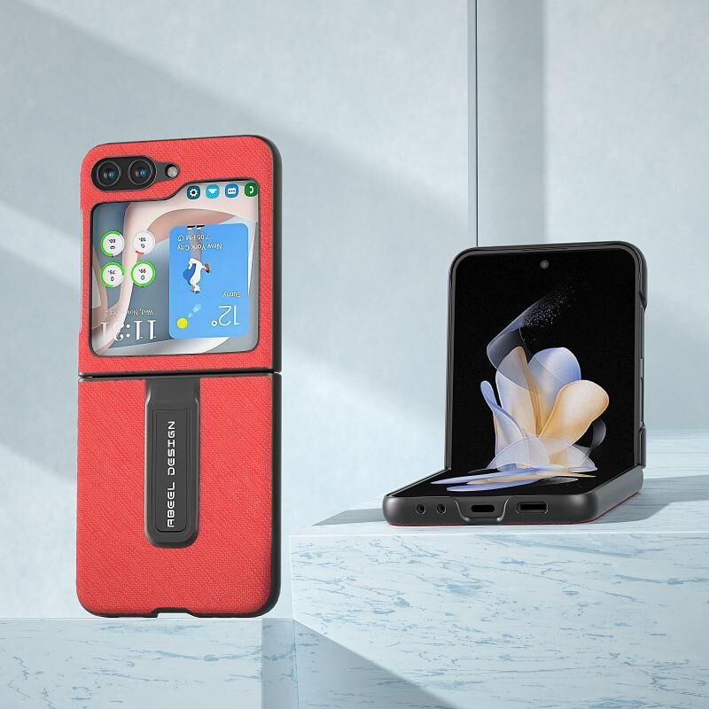 Θήκη τηλεφώνου από γνήσιο δέρμα με υφή σταυρού ABEEL για Samsung Galaxy Z Flip5 με βάση στήριξης (Πράσινο)